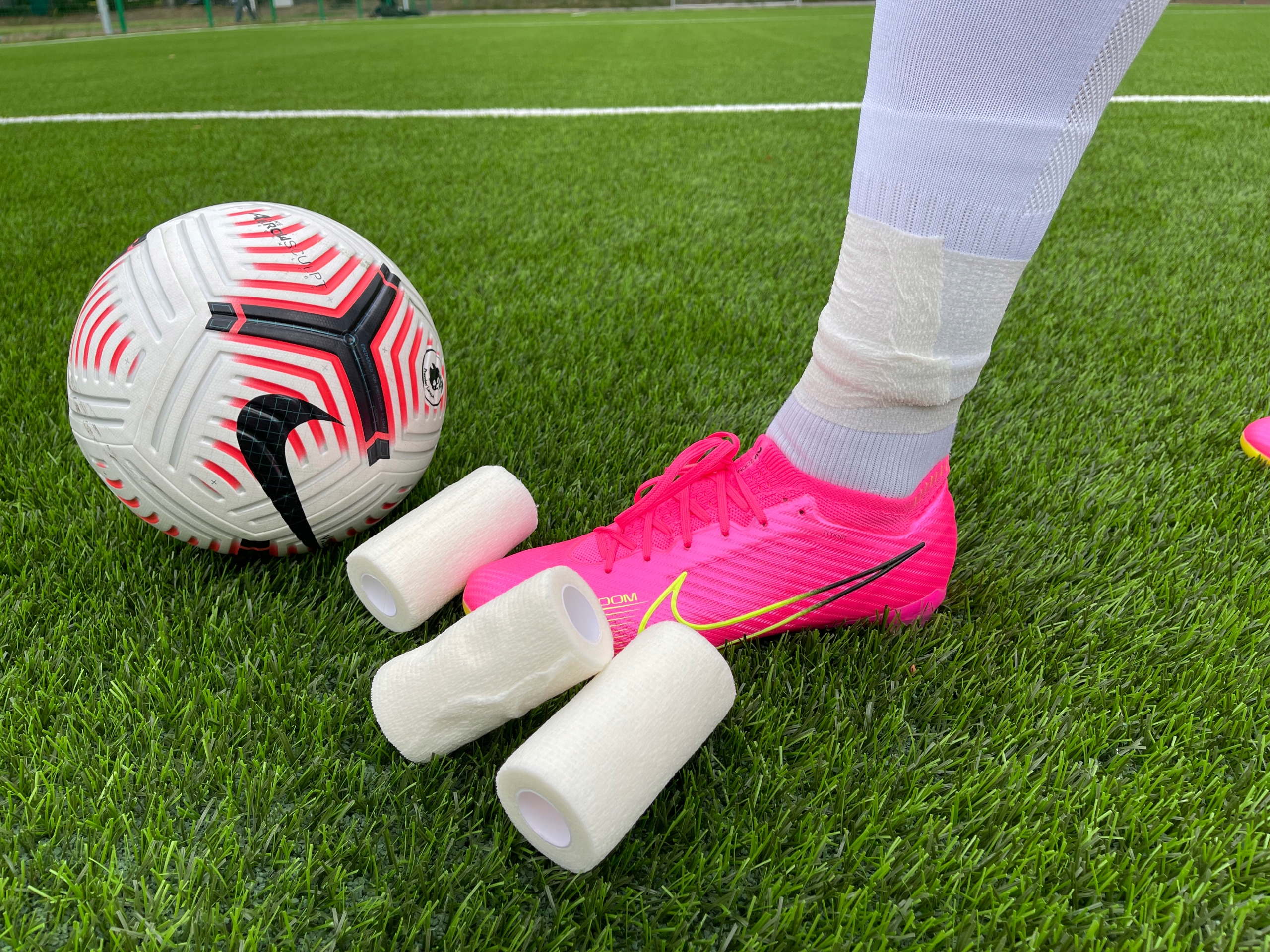 Wystarczy owinąć bandażem tuż nad kostką, równocześnie stabilizując ochraniacz umieszczony pod getrą, który nie może sprawiać dyskomfortu w trakcie dynamicznej gry jaką jest piłka nożna.
