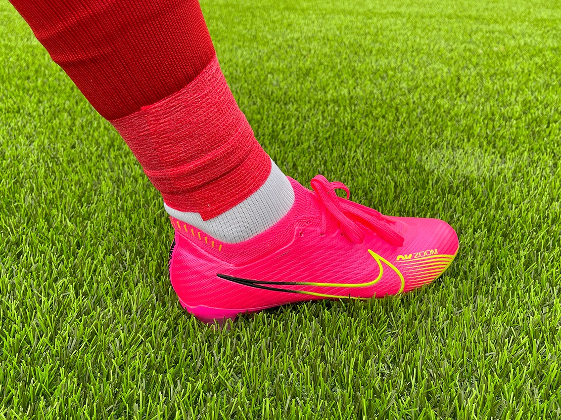Wystarczy owinąć bandażem tuż nad kostką, równocześnie stabilizując ochraniacz umieszczony pod getrą, który nie może sprawiać dyskomfortu w trakcie dynamicznej gry jaką jest piłka nożna.