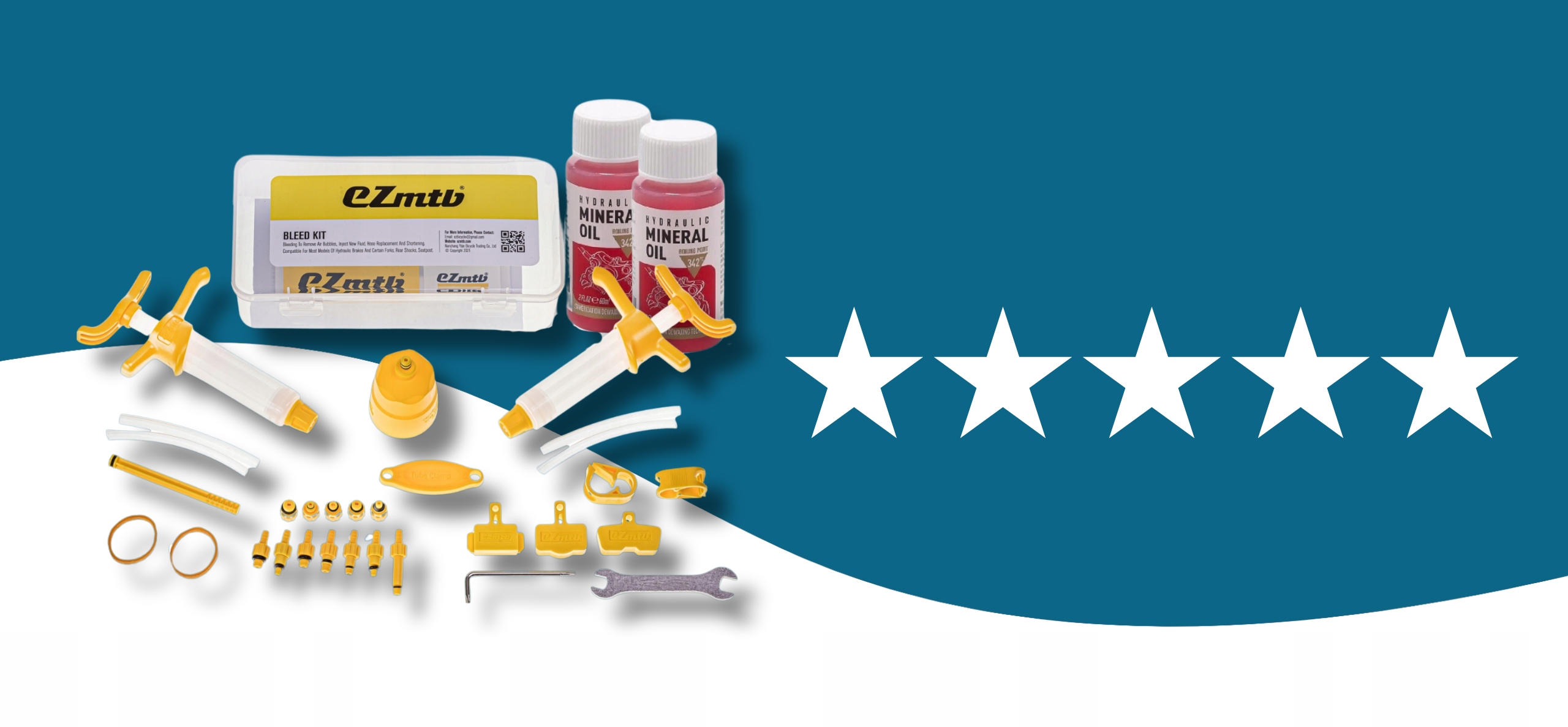 ➡️ Zawartość: 2 strzykawki, 4 wężyki, lejek z zatyczką, 10 adapterów, 3 klocki dystansowe, 2 zaciski, 2x olej mineralny 60ml, rękawiczki, instrukcja.