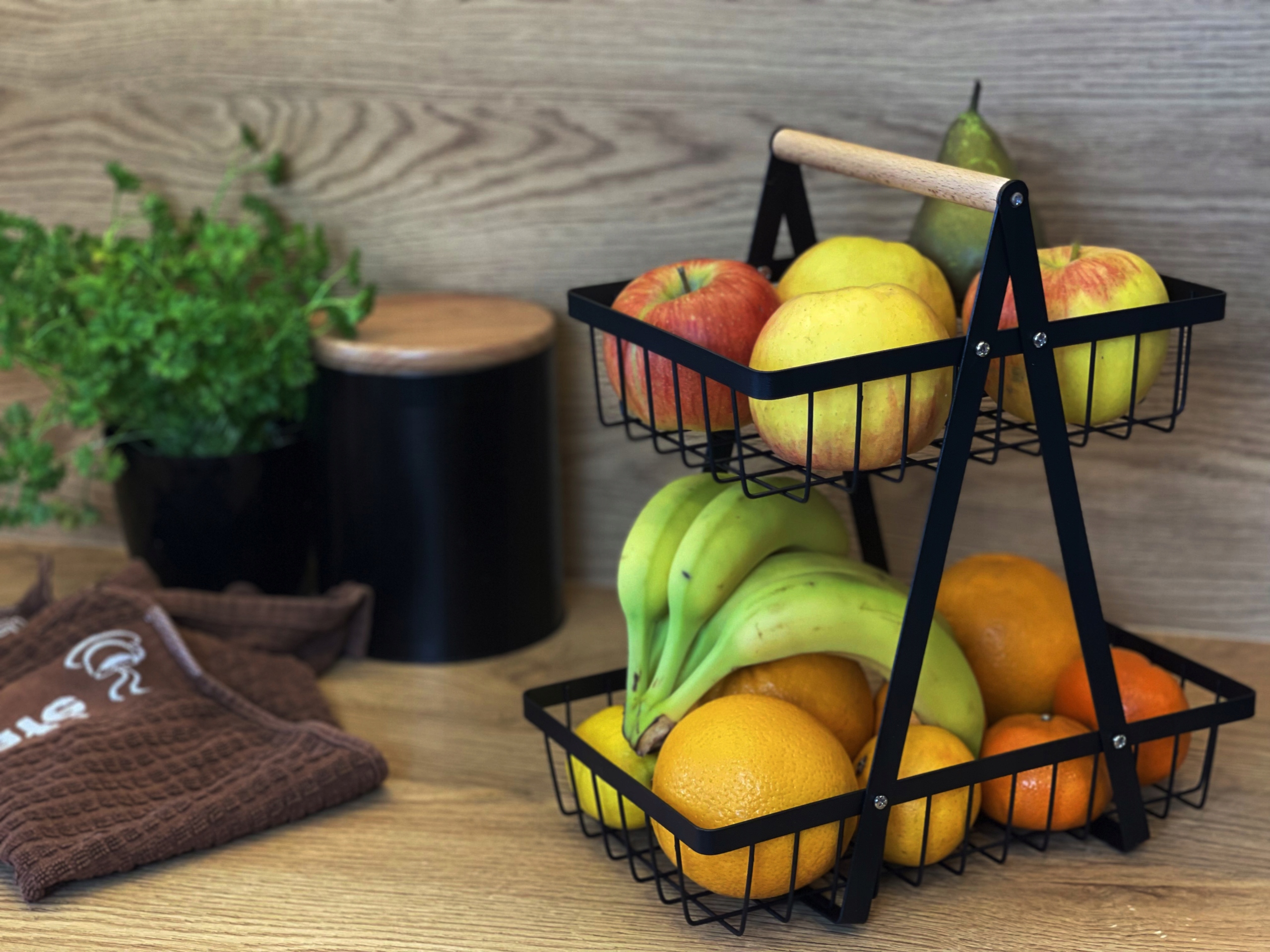 Dwupoziomowy kosz na owoce i warzywa to nie tylko praktyczny element wyposażenia Twojej kuchni, ale także stylowy dodatek, który doda elegancji i porządku Twojemu wnętrzu. Zaprojektowany z myślą o organizacji i przechowywaniu świeżych produktów dla każdego kto ceni sobie zarówno funkcjonalność, jak i estetykę.