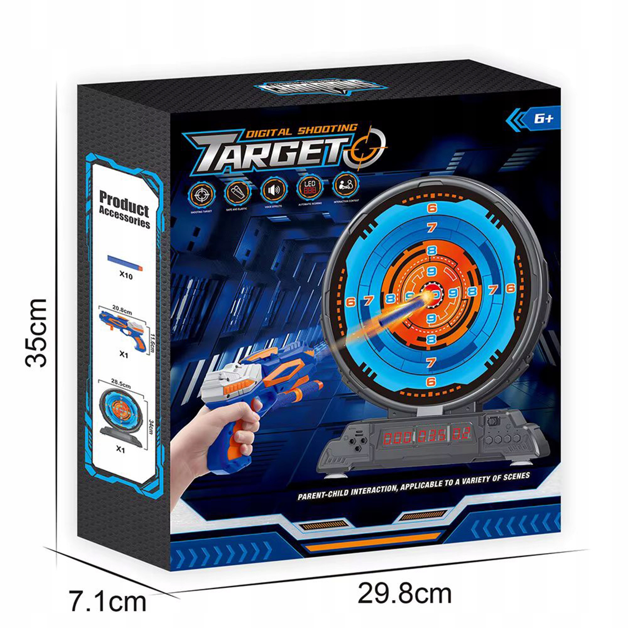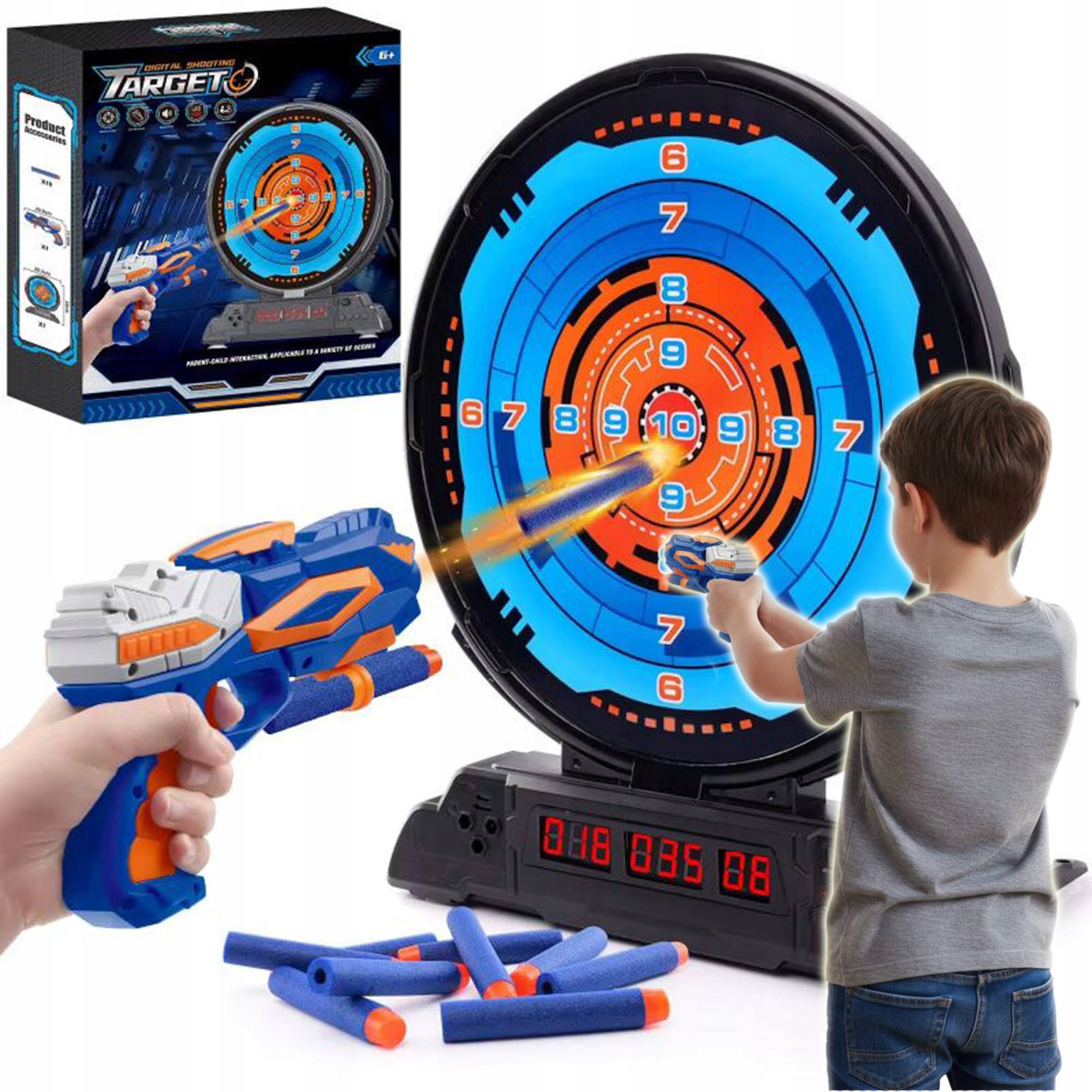 ELEKTRONICZNA TARCZA STRZELECKA DLA DZIECI LCD PISTOLET 10 STRZAŁEK TRYBY 3