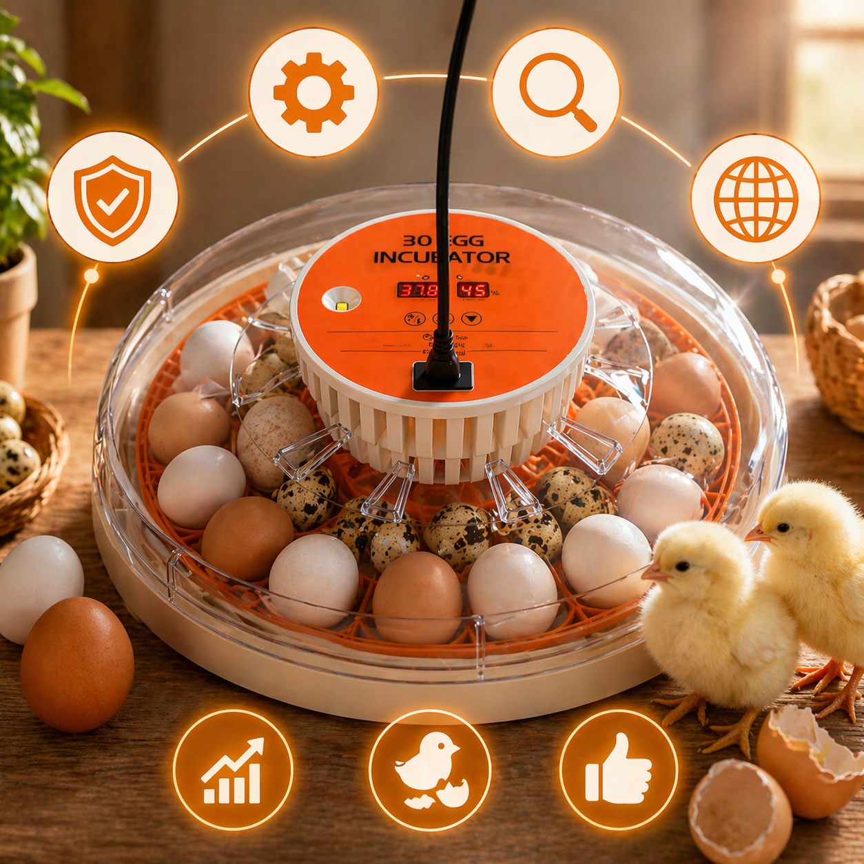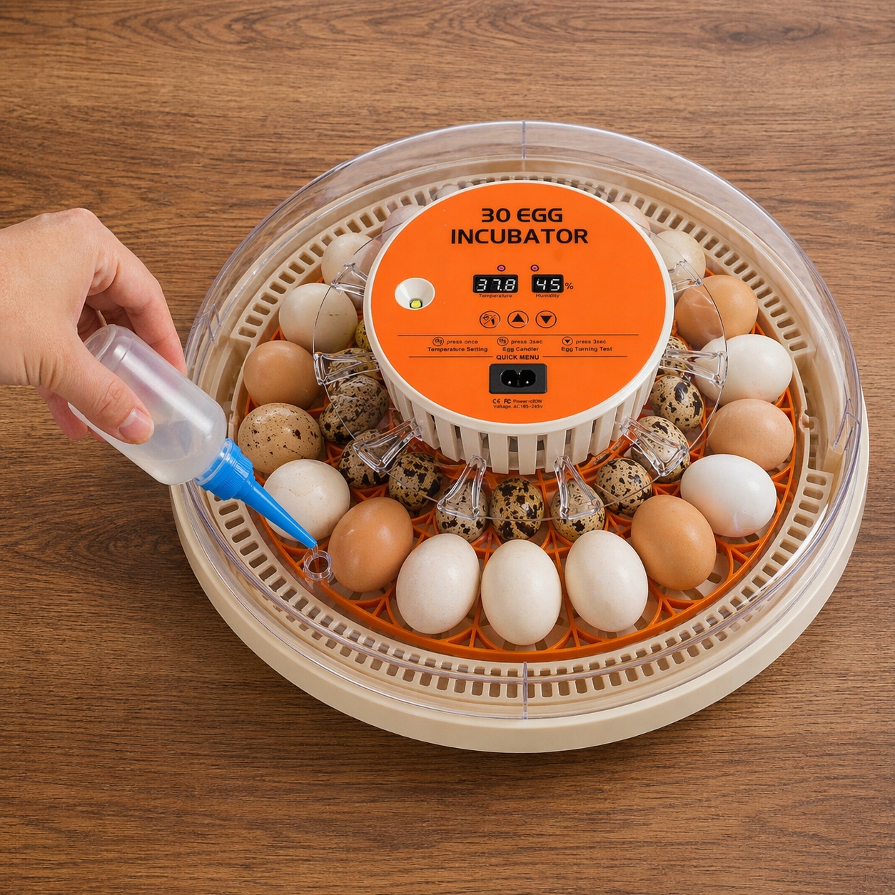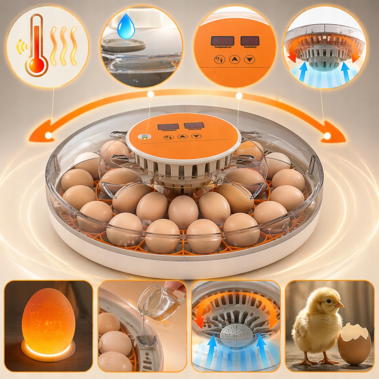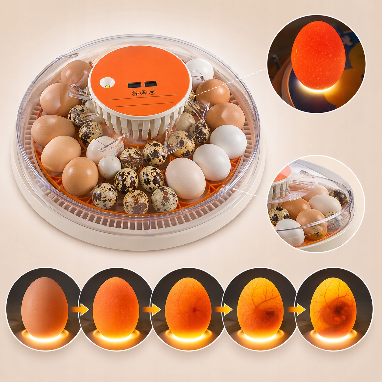 ✔️ wbudowany owoskop LED pozwala prześwietlać jaja