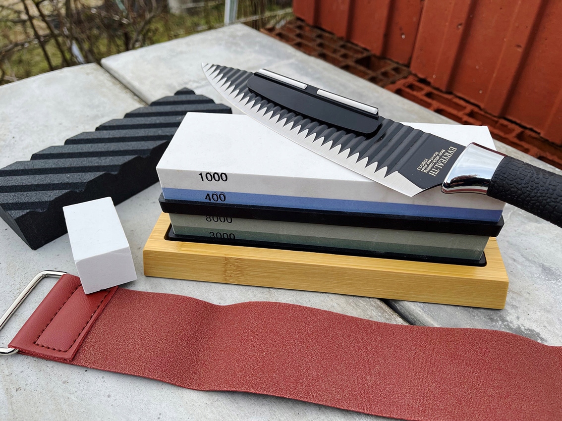 Im niższa wartość, np. 400, tym grubsza granulacja. Najwyższe wartości, np. 8000, służą do wykańczania i polerowania ostrza. Ostrzałka jest bardzo prosta w obsłudze i bezpieczna.