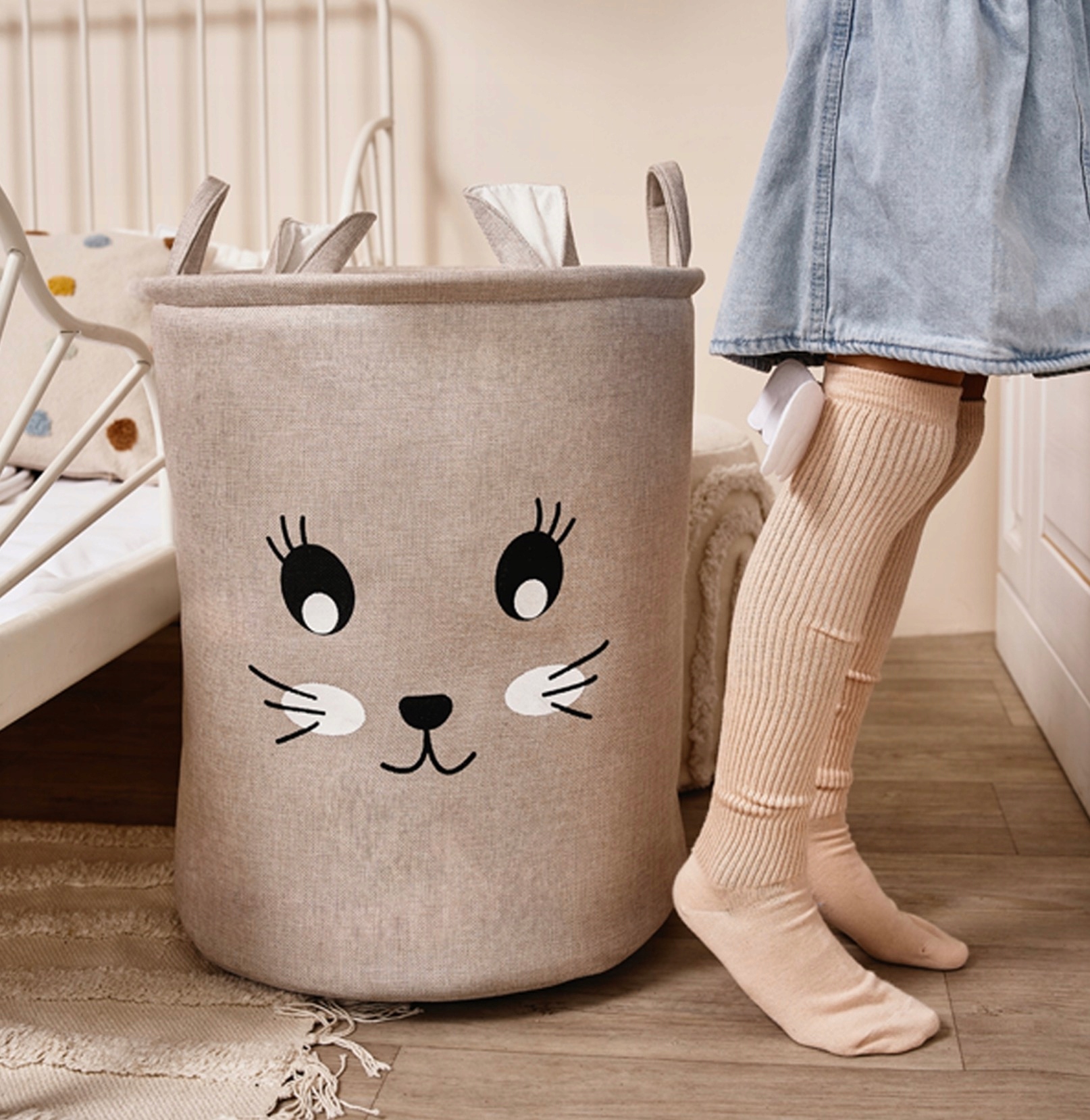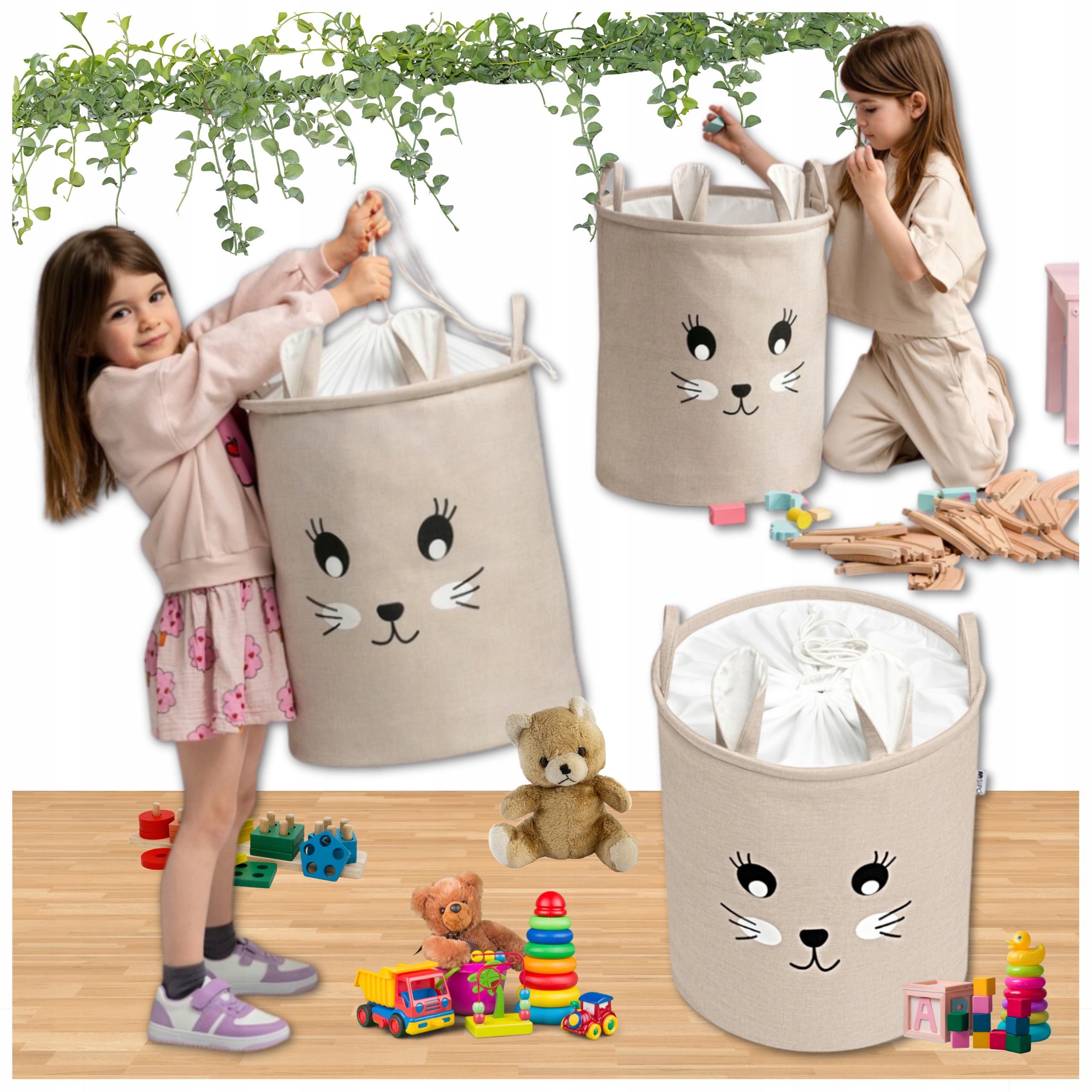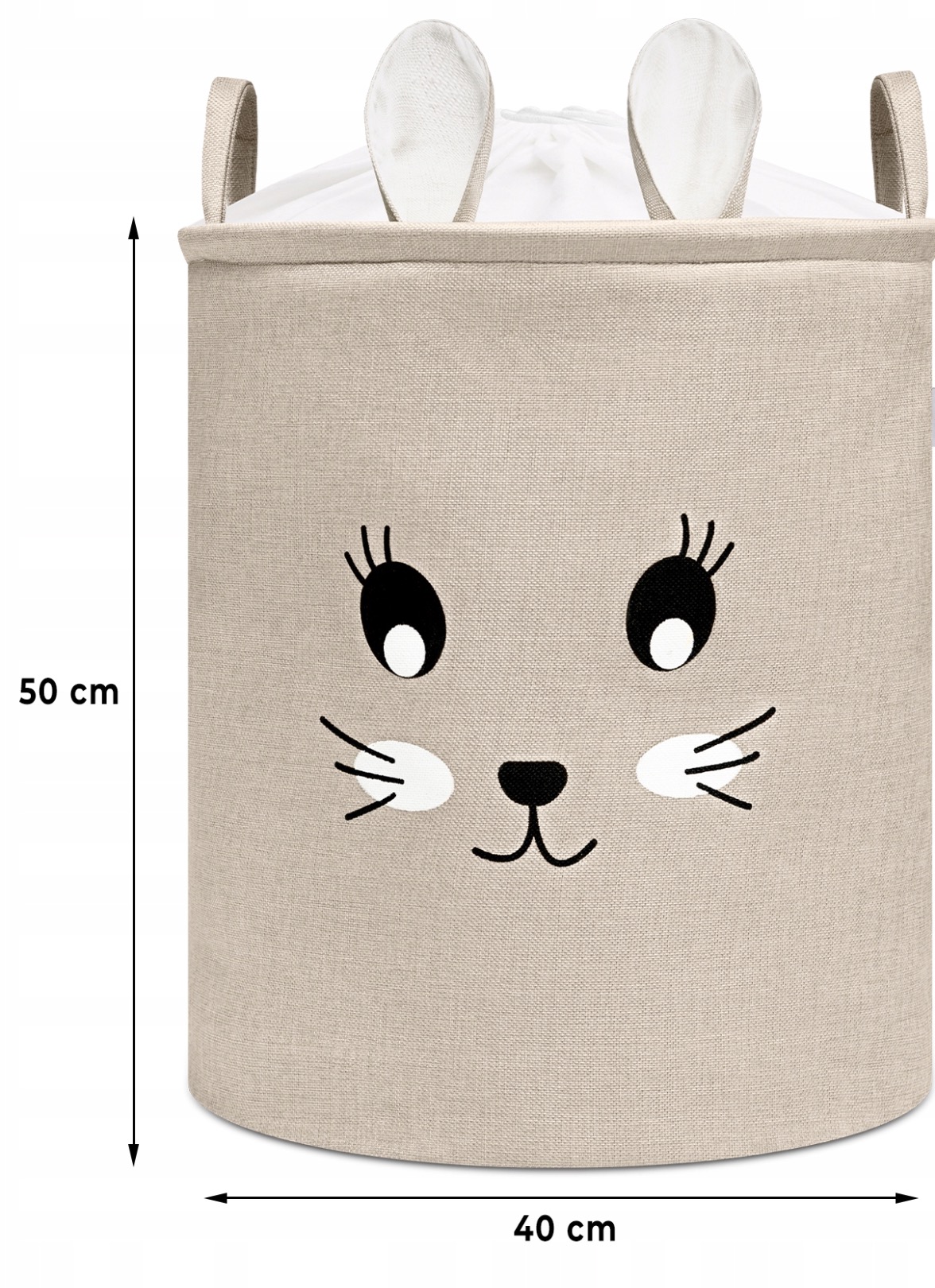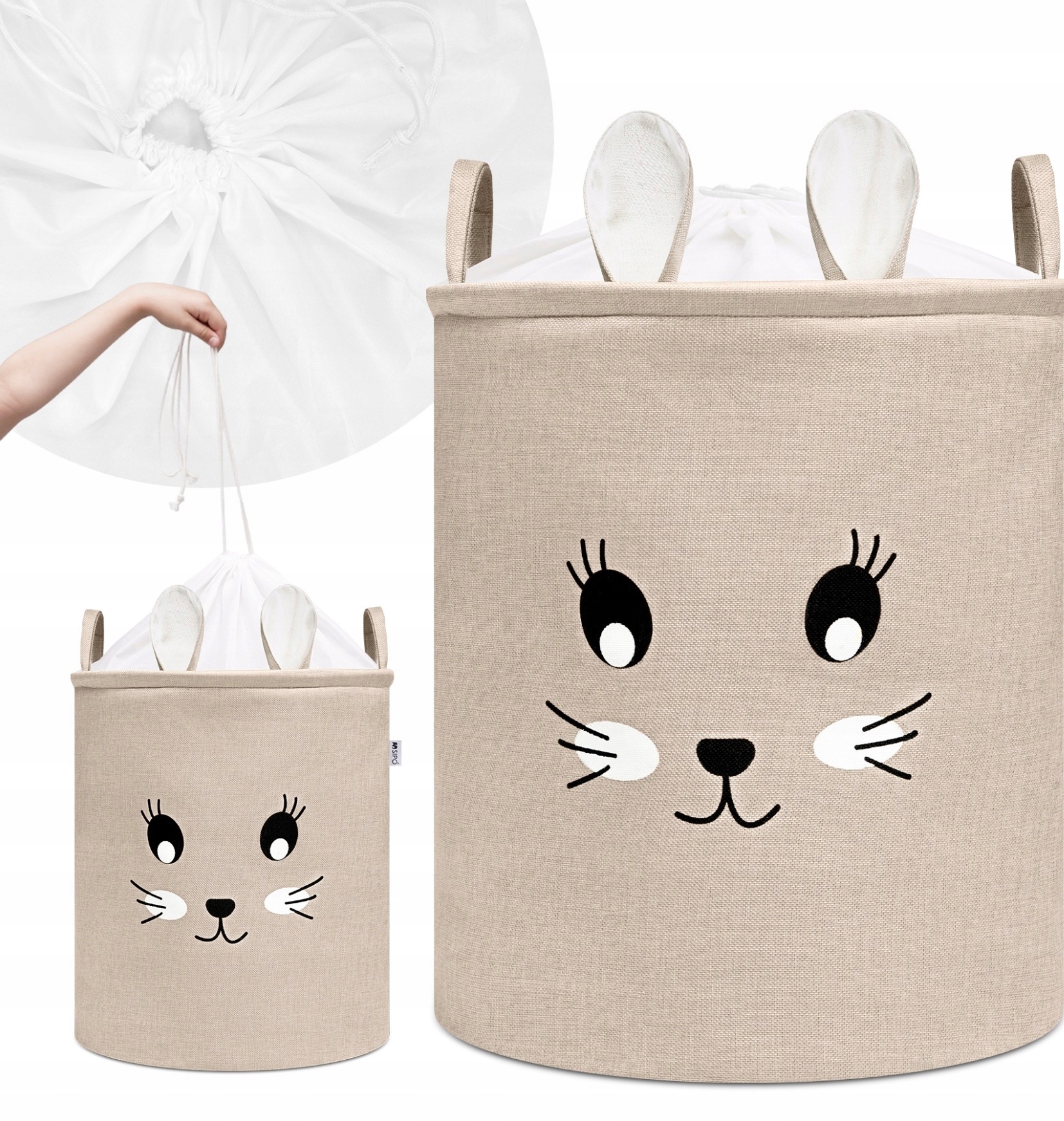 Zabawki, pluszaki i klocki bardzo szybko potrafią zapełnić pokój dziecka. Duży kosz na zabawki z uroczym motywem króliczka pozwala uporządkować je w kilka sekund. Wystarczy wrzucić wszystko do środka i zaciągnąć praktyczny ściągacz, aby pokój znów wyglądał schludnie.
