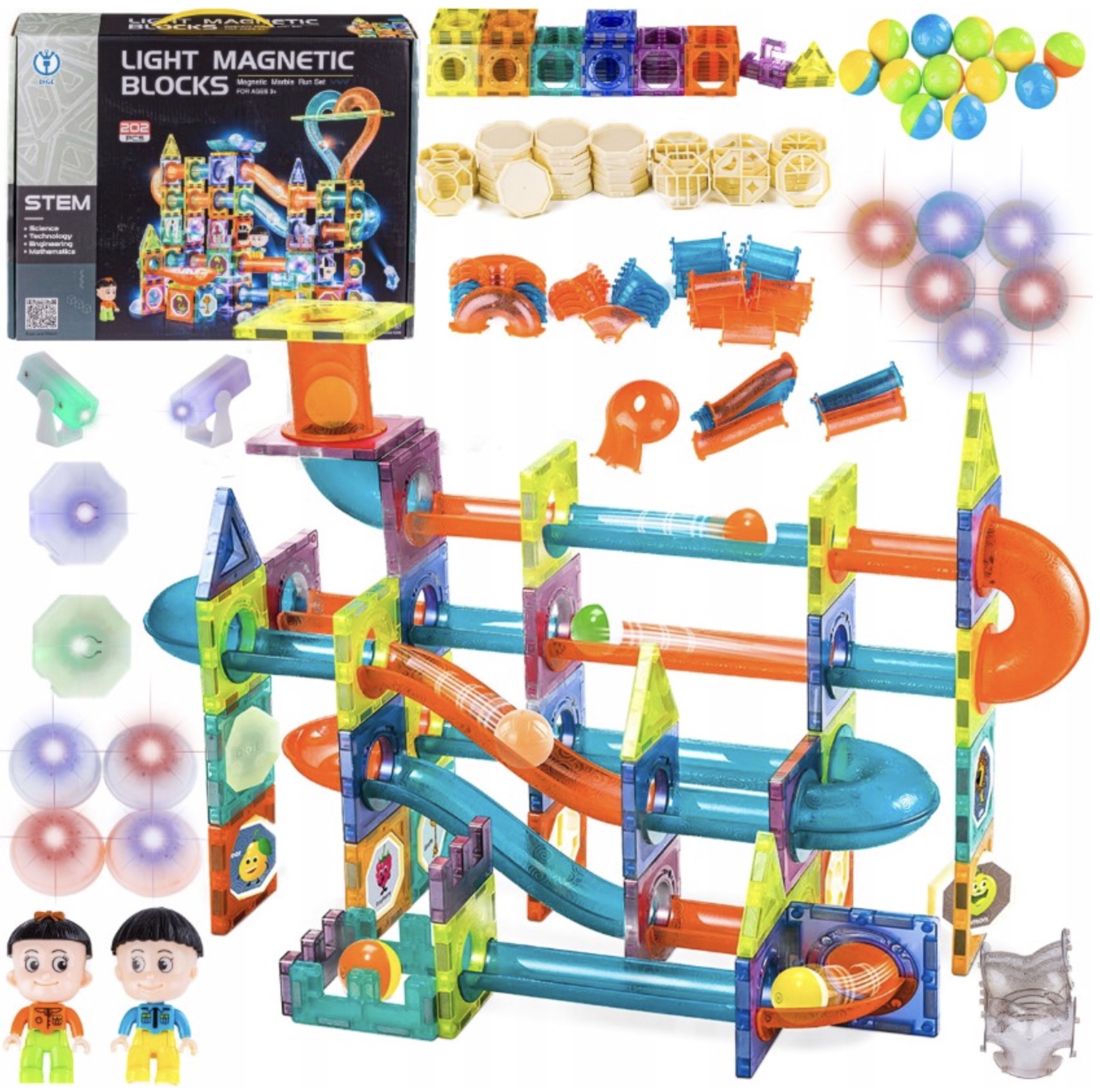 Klocki Magnetyczne 202el Kulodrom Tor Kulkowy LED Zestaw Konstrukcyjny XXL