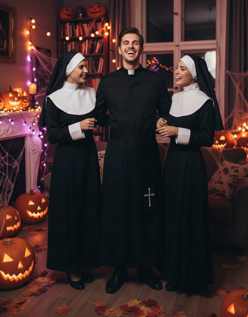 Halloween 2025, bale maskowe, karnawał, spektakl, kabaret czy tematyczny wieczór w gronie znajomych – klasyczna sutanna z koloratką wpisze się w każdy scenariusz. Wystarczy dodać rekwizyty (np. książkę, różaniec, okulary – niewchodzą w skład zestawu) i masz gotową rolę.