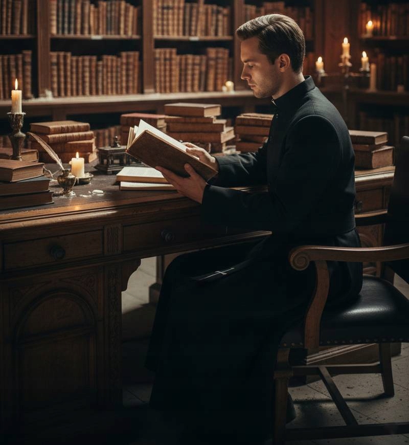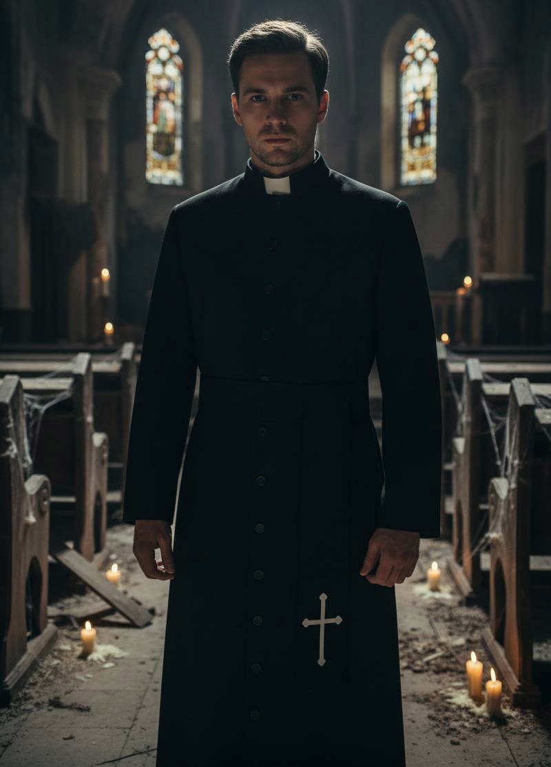 Drzwi się otwierają, rozmowy milkną, a Ty wchodzisz w długiej sutannie z subtelnym połyskiem materiału. Kostium księdza buduje klimat: trochę teatru, trochę humoru, 100% rozpoznawalności.