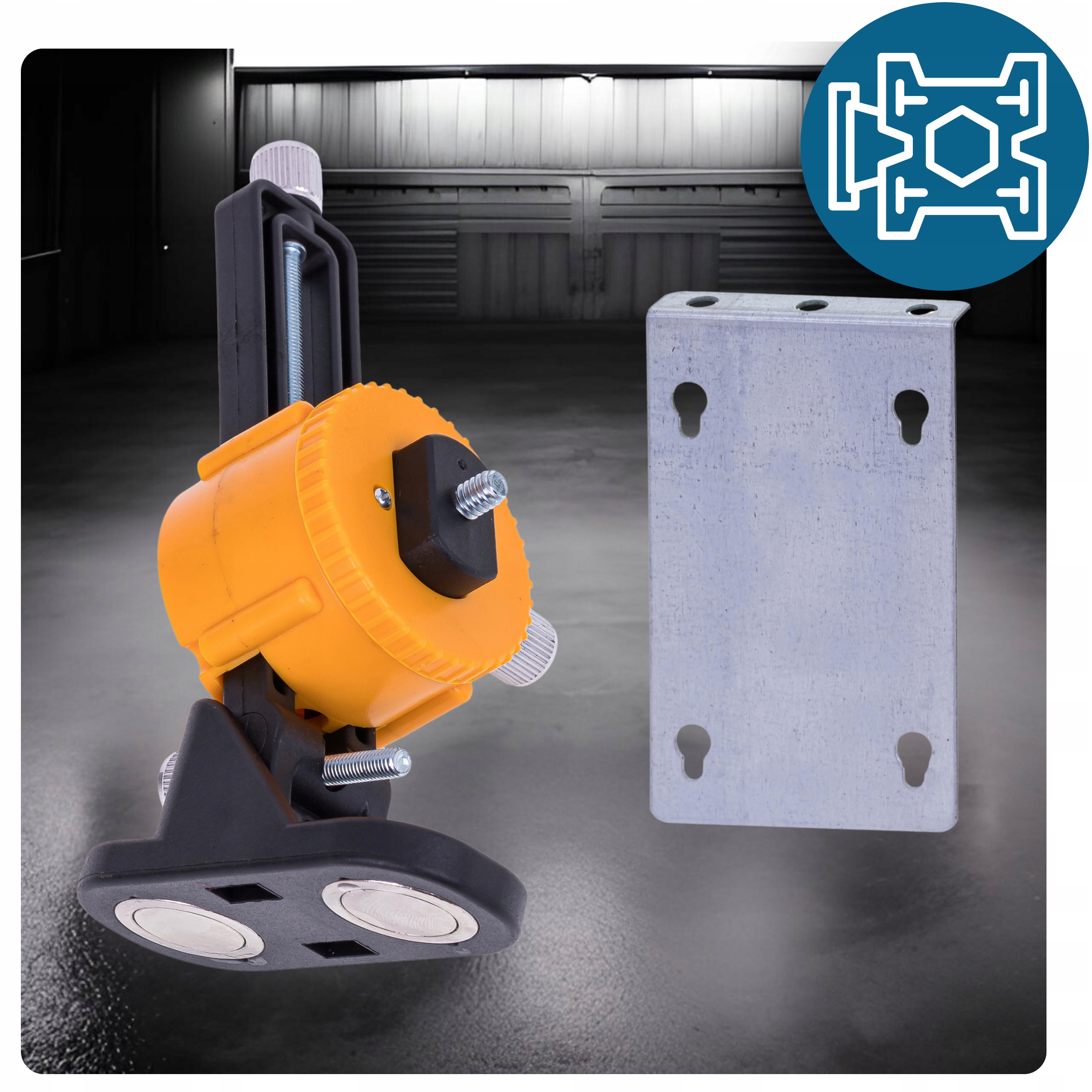 ☑️ Regulowany uchwyt do poziomicy zawierający solidne magnesy stworzy solidne połączenie pomiędzy blachą zamontowaną wcześniej a poziomicą.