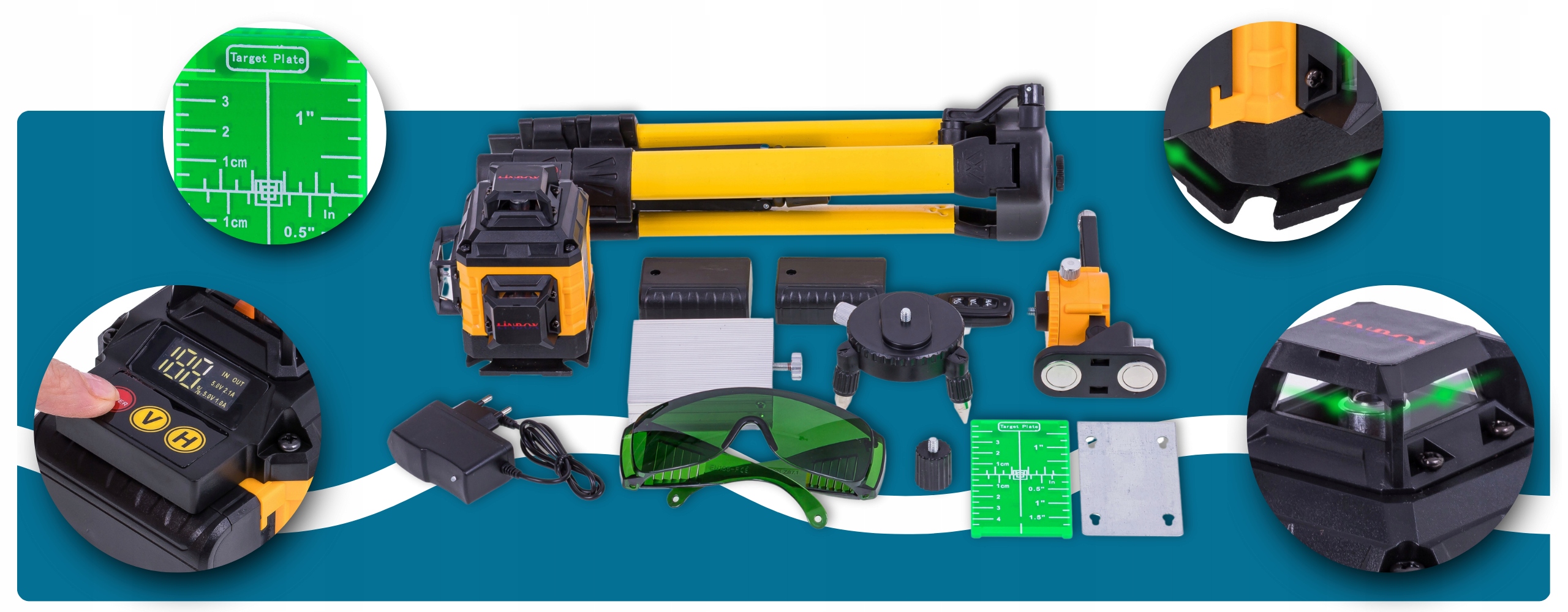 ⚫️ Profesjonalna Poziomica Laserowa 360° z Bogatym Zestawem Gratisów