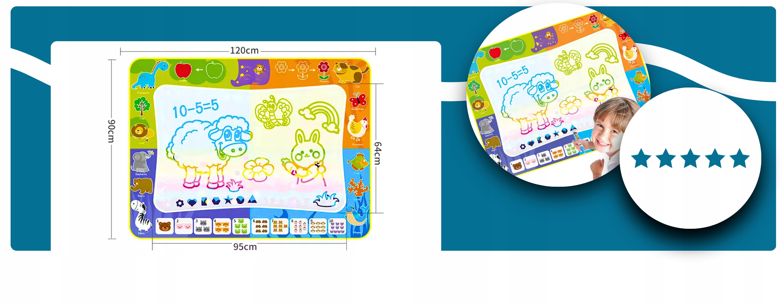 MATA WODNA DO RYSOWANIA MALOWANIA WODĄ KREATYWNA DZIECI AKCESORIA 120x90