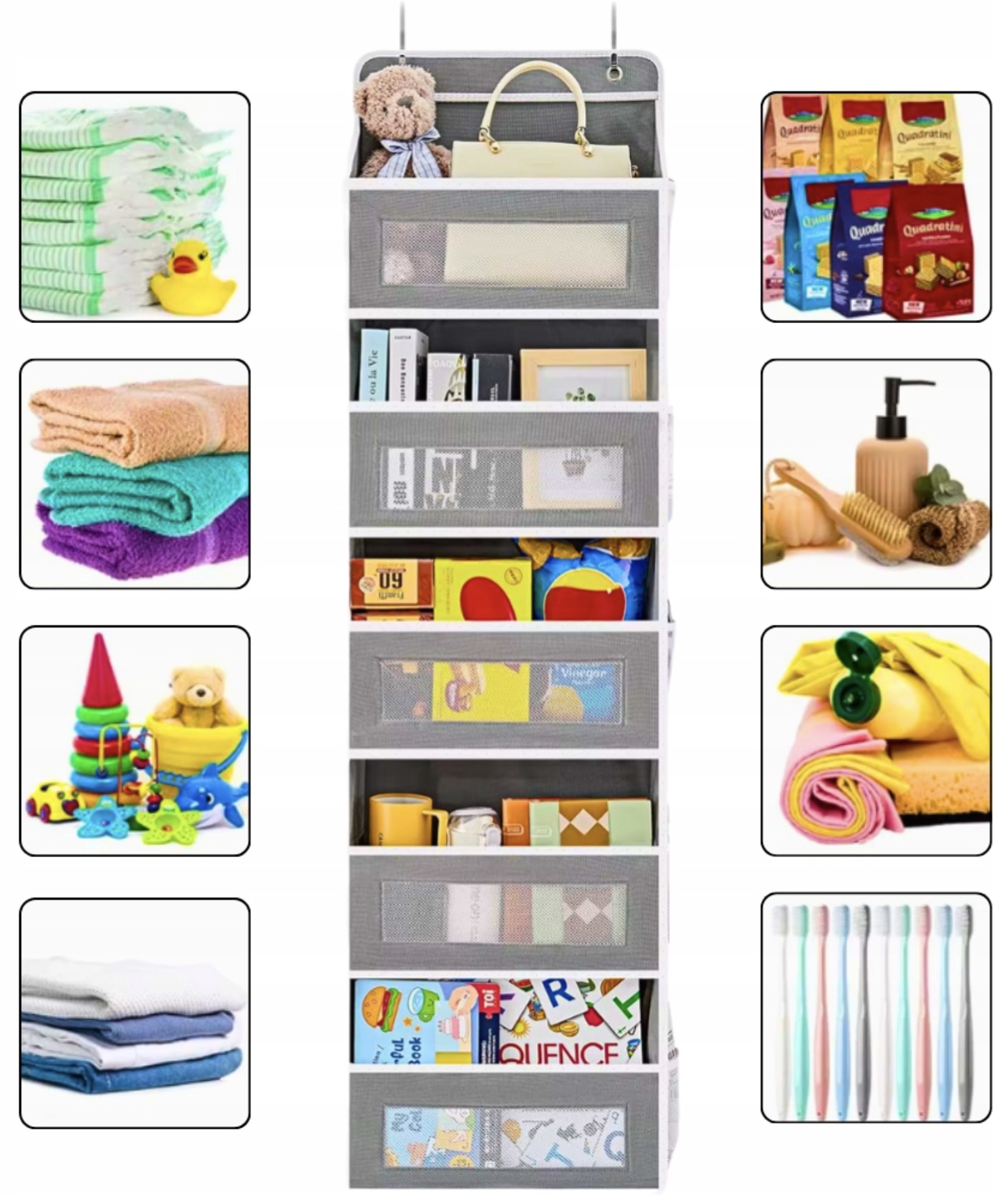 Wystarczy zawiesić organizer na drzwiach lub w szafie.