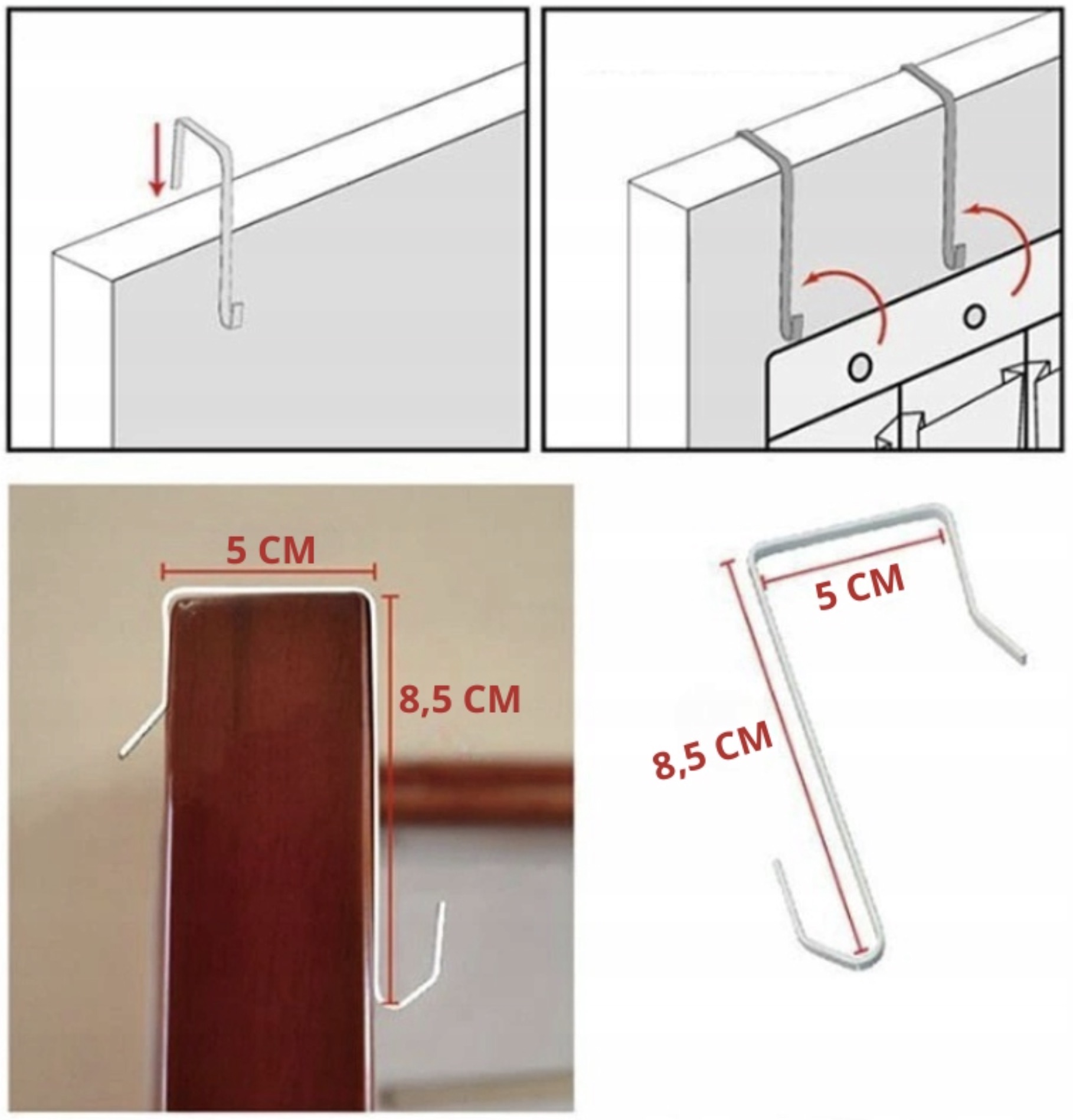 Montaż: zawieszany, bez narzędzi (w zestawie dołączone haczyki)Haczyki: maksymalna grubość drzwi na jakich można zawiesić haczyki to 5cm