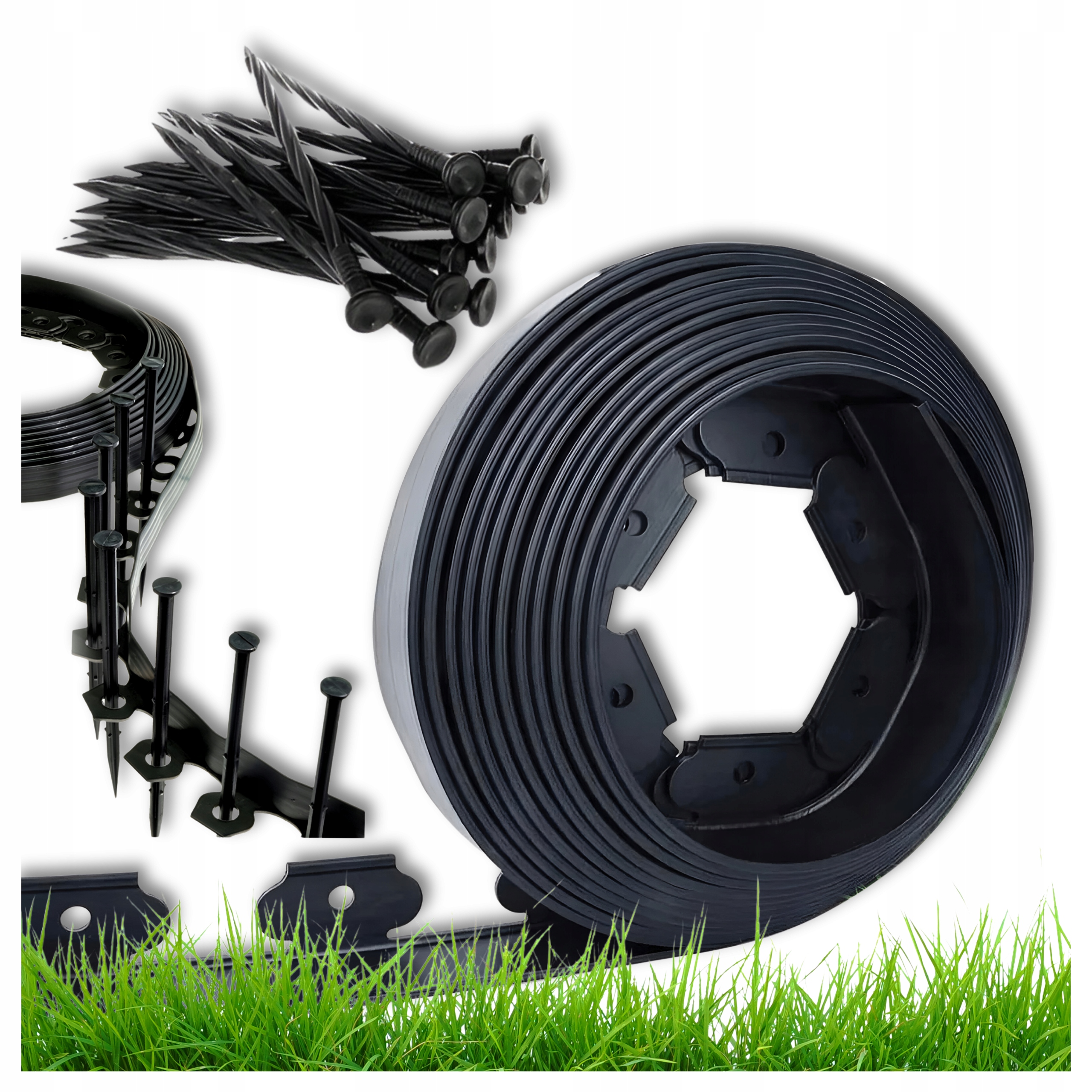 Obrzeże Trawnikowe Ogrodowe 4cm x 20m Zestaw 60 Kołków Kotew Szpilek Czarne