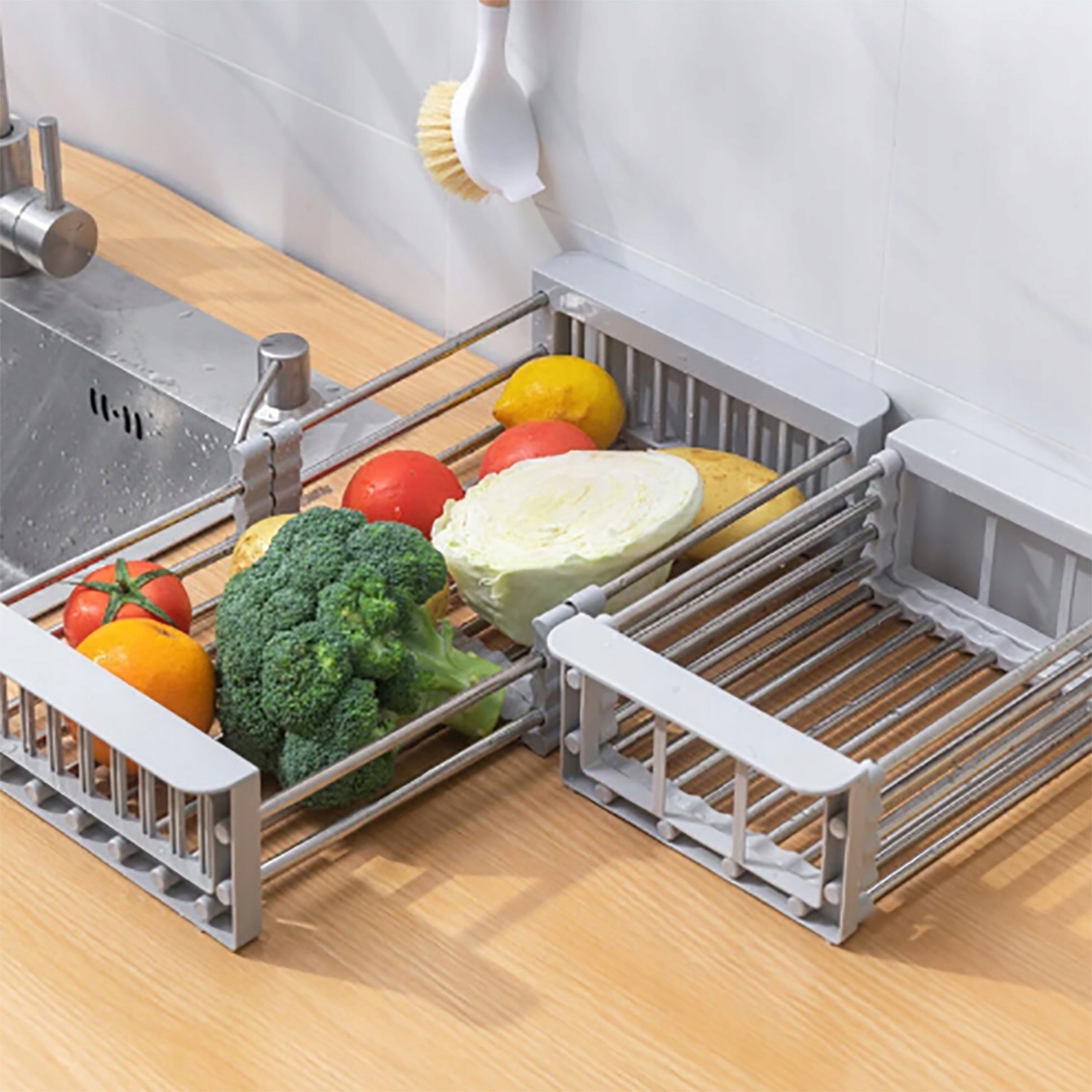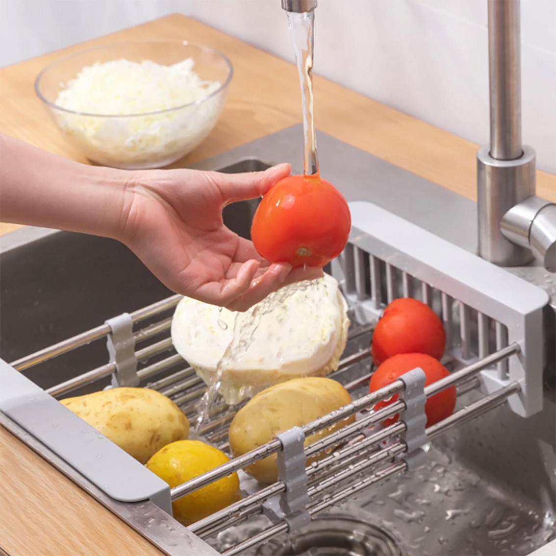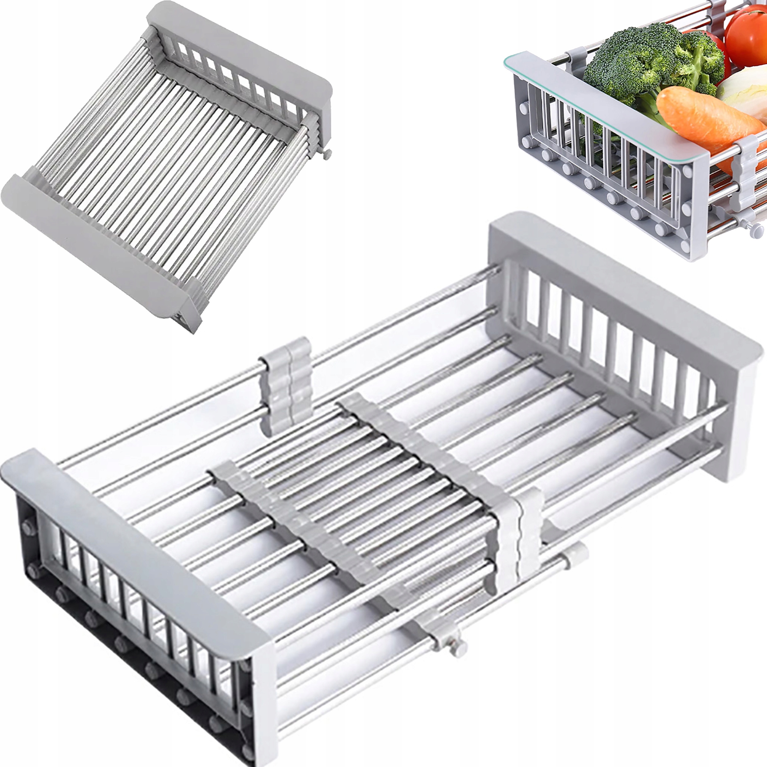 Ociekacz teleskopowy na zlew ze stali nierdzewnej – koszyk do mycia i osuszania owoców, warzyw i naczyń