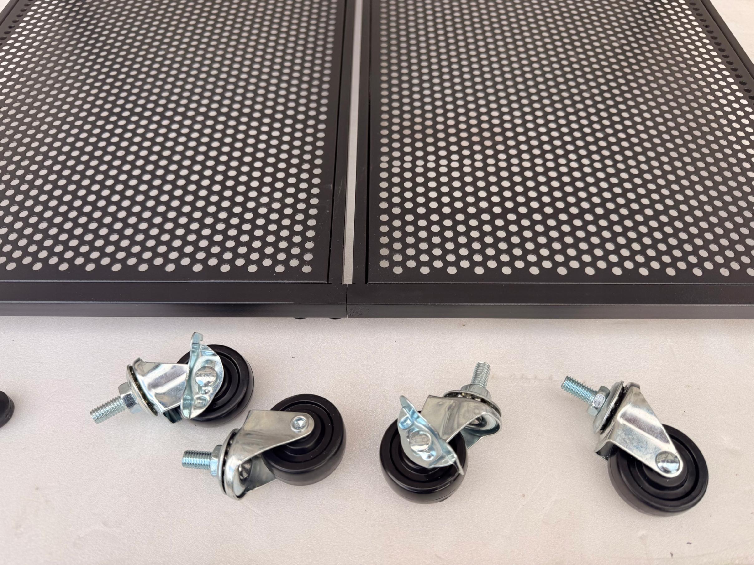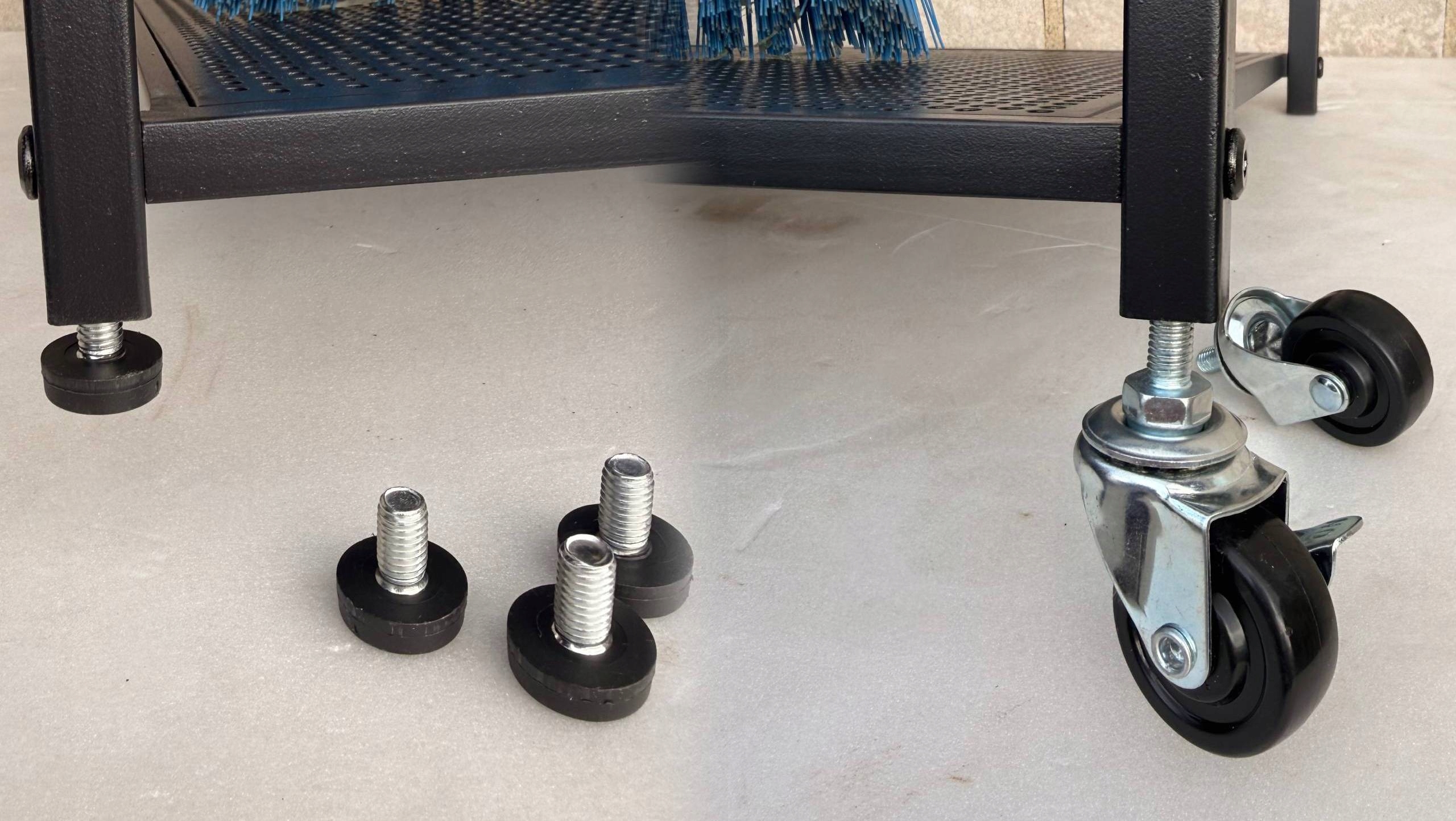 ✔️ 4 kółka – umożliwiają łatwe przesuwanie stojaka, w tym dwa kółka z blokadą STOP – stabilność podczas pracy