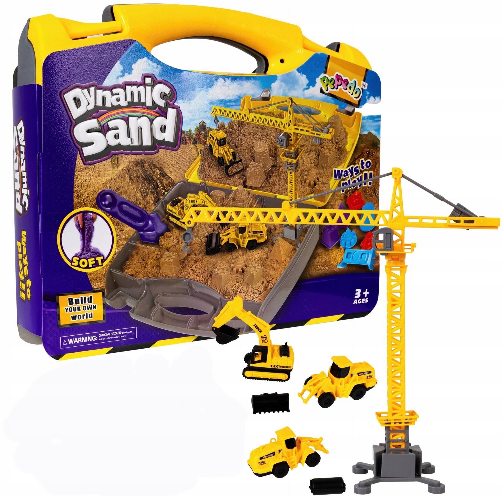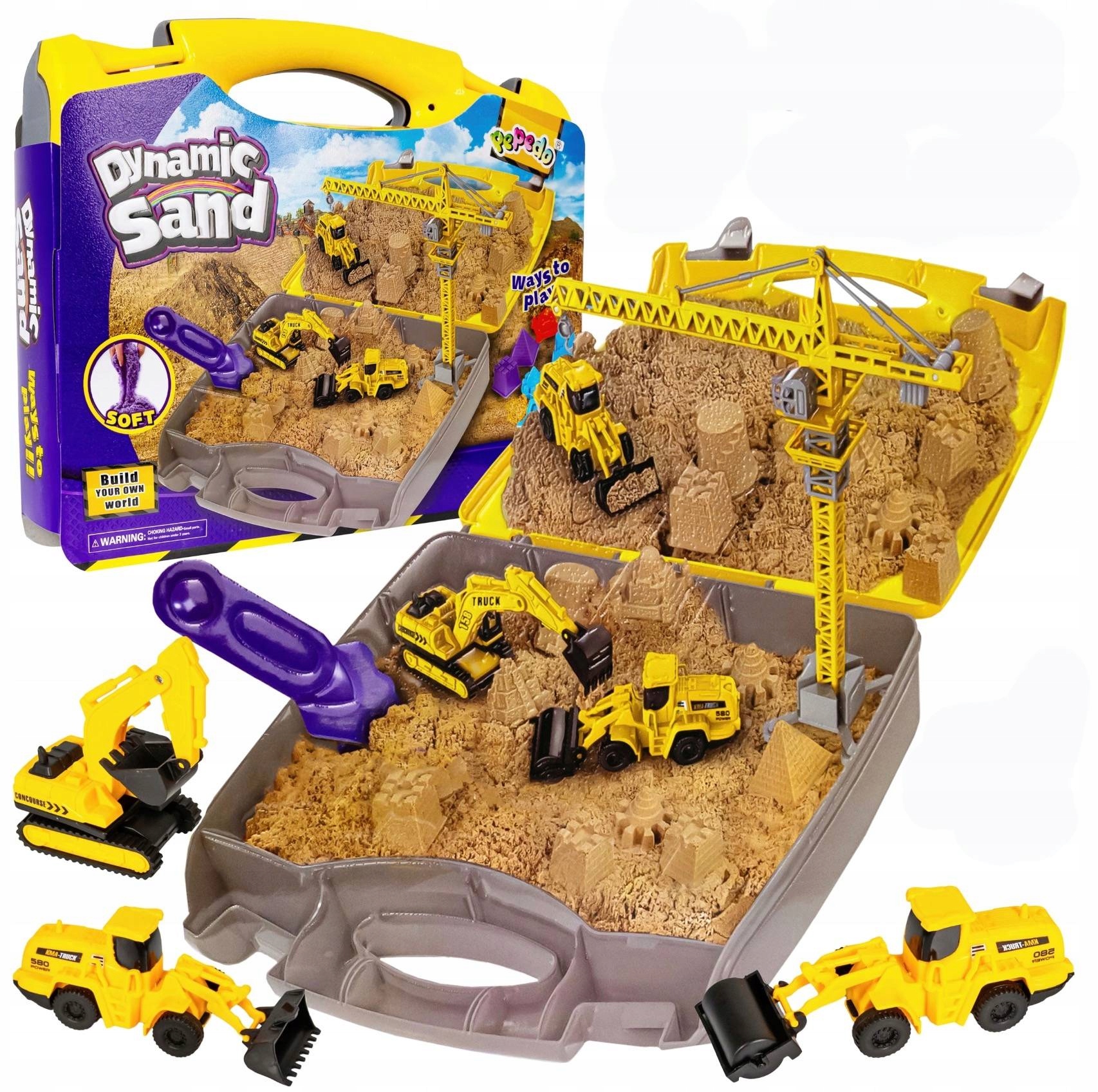 PIASEK KINETYCZNY WALIZKA POJAZDY BUDOWLANE ŻURAW ZESTAW PLAC BUDOWY DIY