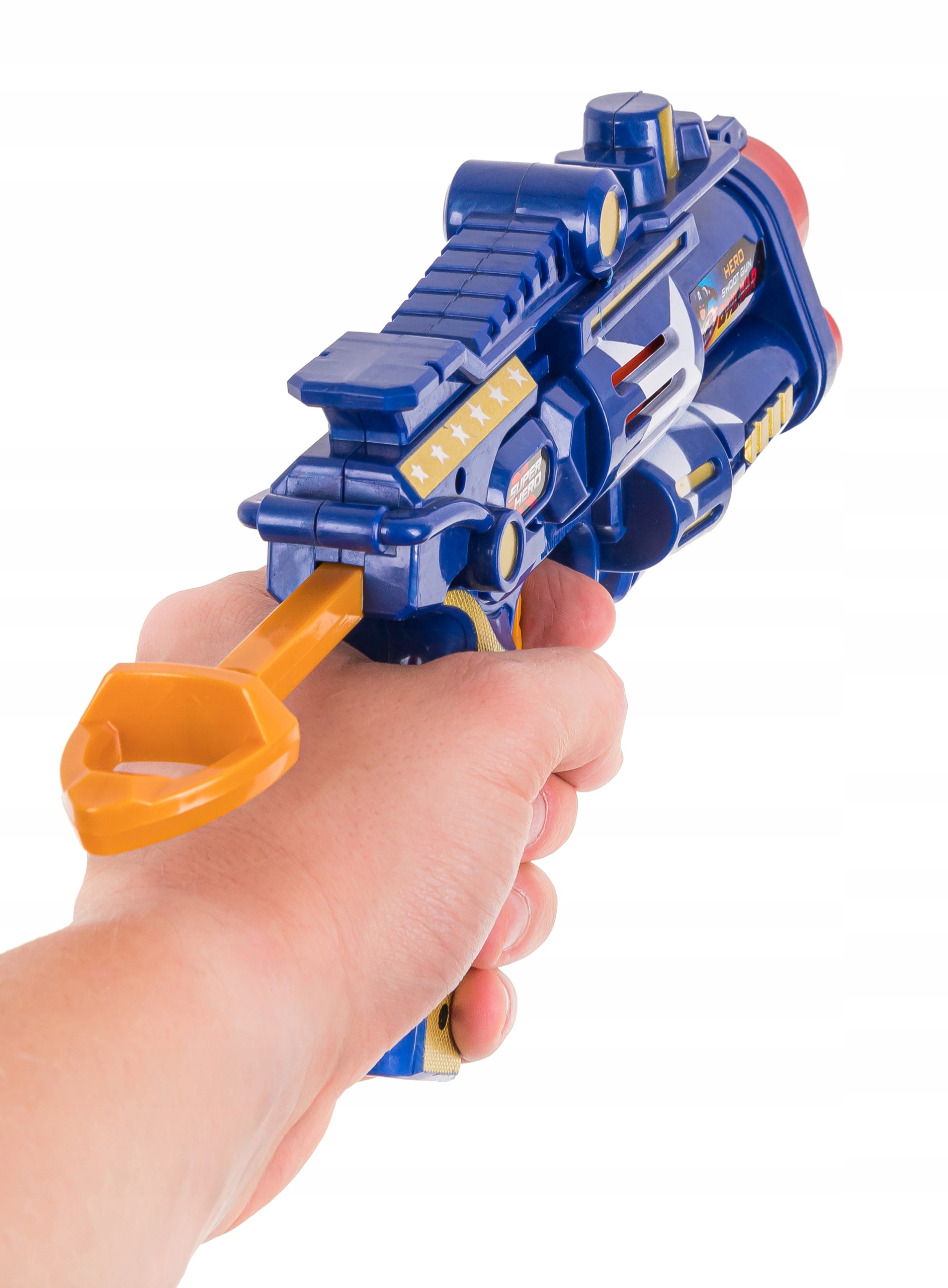 Pistolet ma solidne wykonanie ze względu na użyty mocny materiał, ale zarazem jest lekki i bezpieczny dla bawiącego się dziecka - nie ma ostrych, wystających elementów, a pociski są wykonane z delikatnego materiału piankowego.