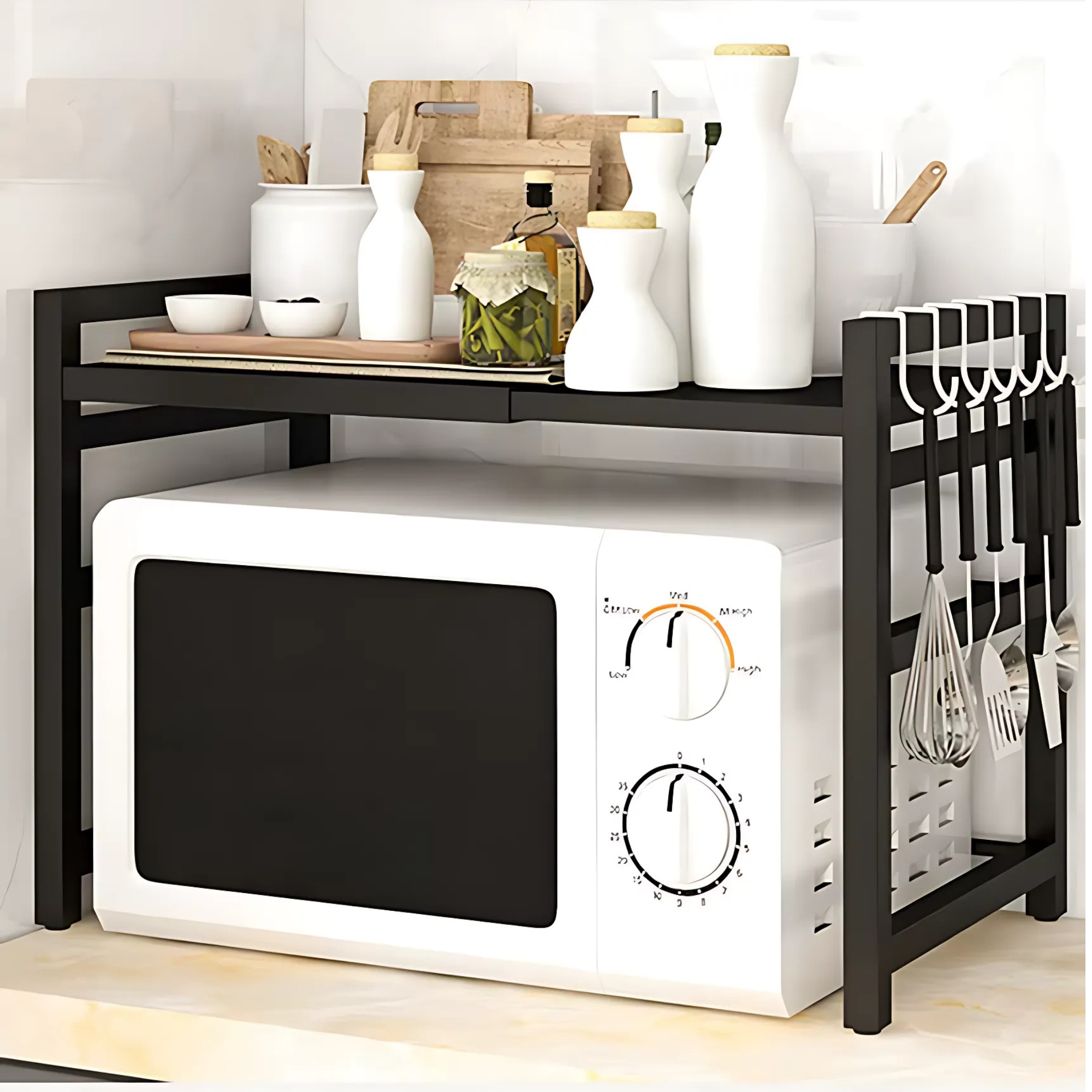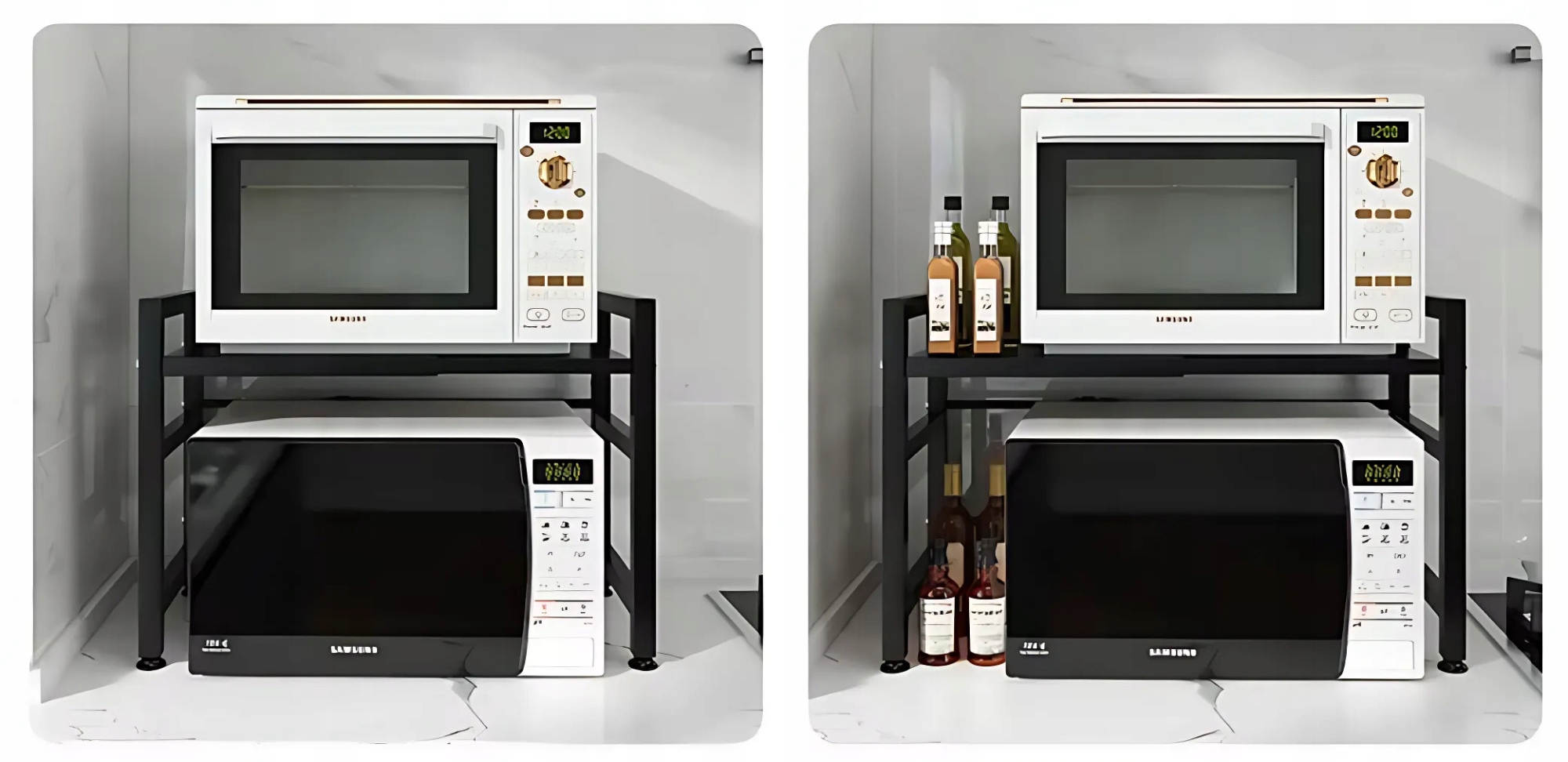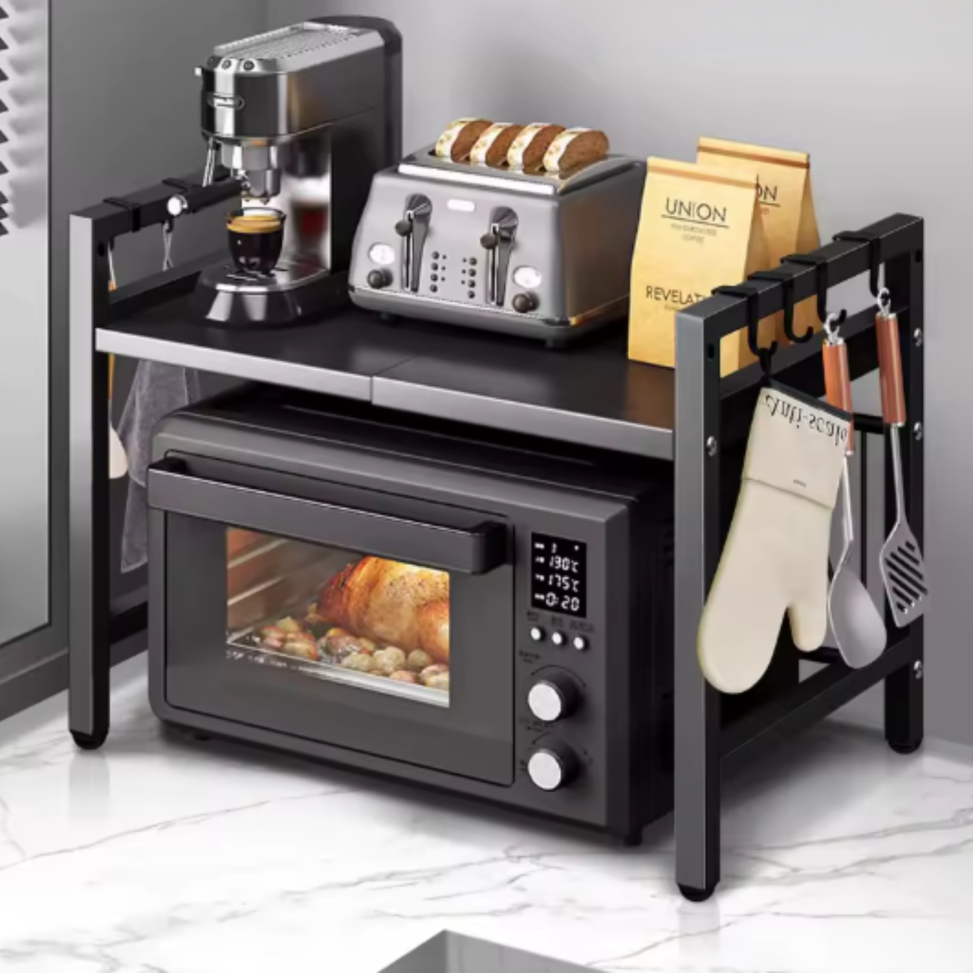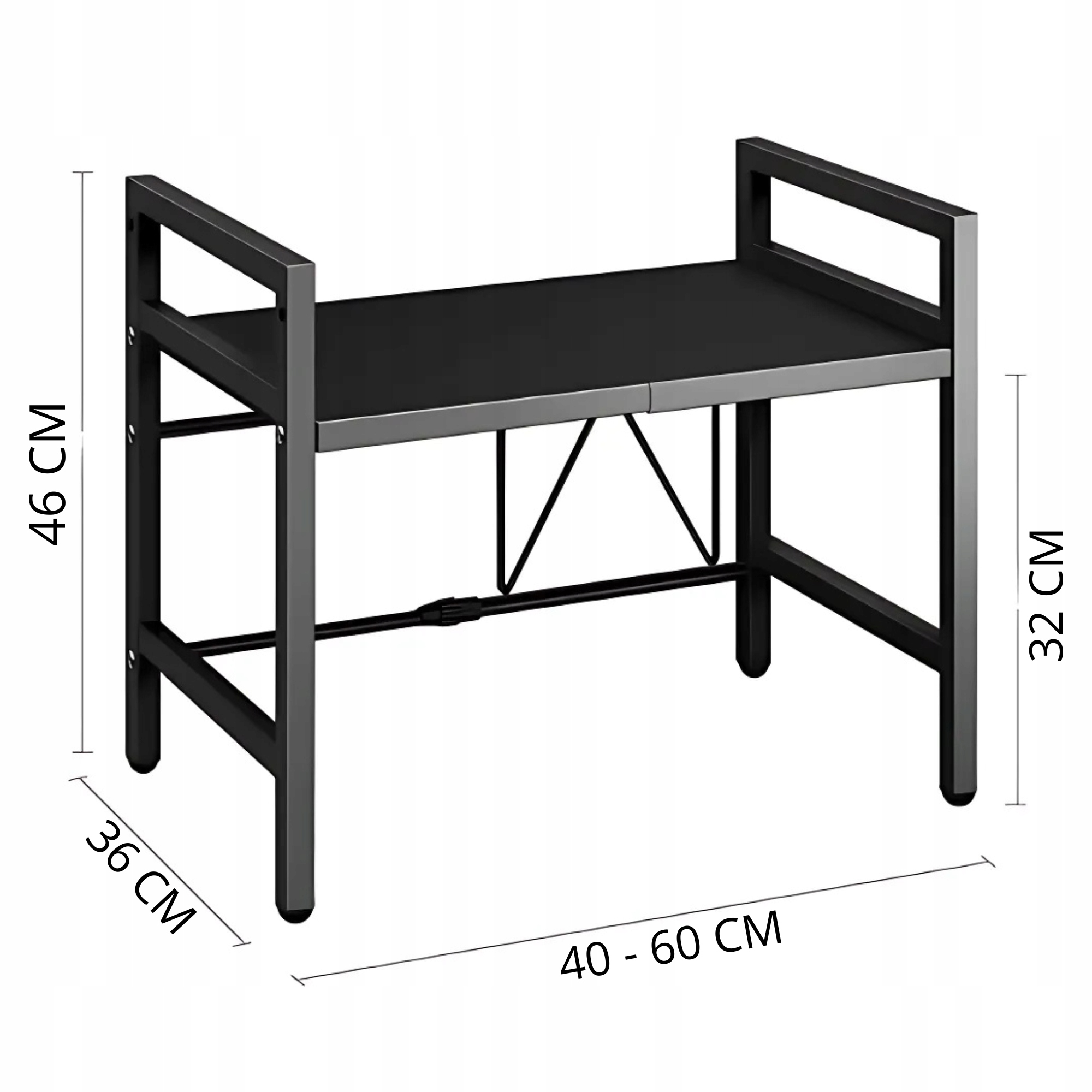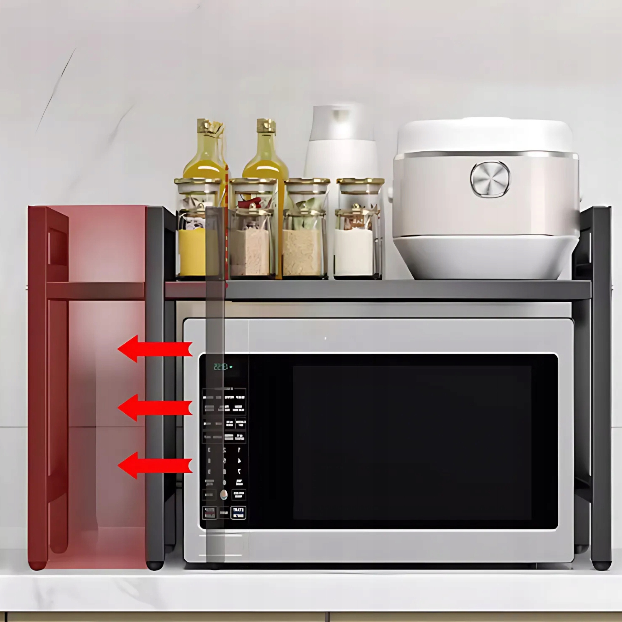 Przestrzeń nad mikrofalówką to jeden z najbardziej niedocenianych obszarów w kuchni. Ta teleskopowa półka zamienia ją w funkcjonalną, stabilną i estetyczną strefę roboczą — bez ingerencji w meble.