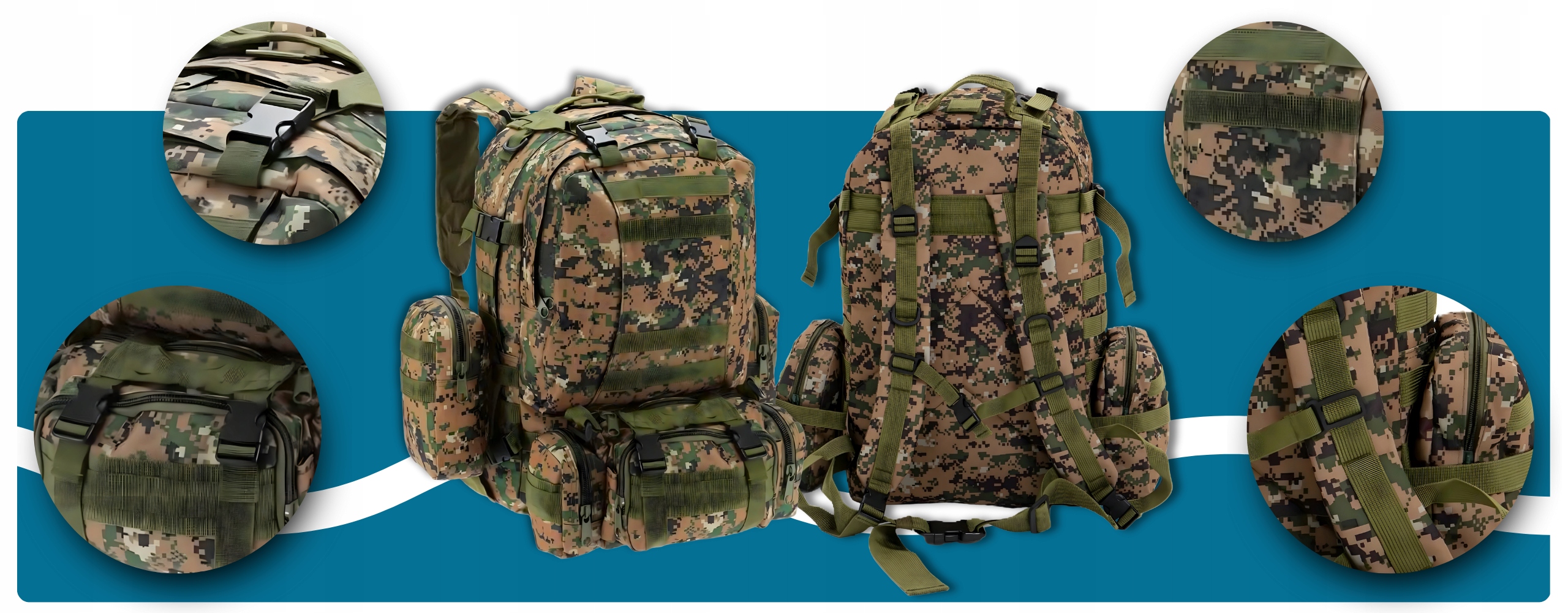 Plecak taktyczny 50L kamuflaż 4w1 charakteryzuje się niezwykle wysoką jakością wykonania i materiałów, co gwarantuje jego długowieczność i odporność na intensywne użytkowanie w każdych warunkach.