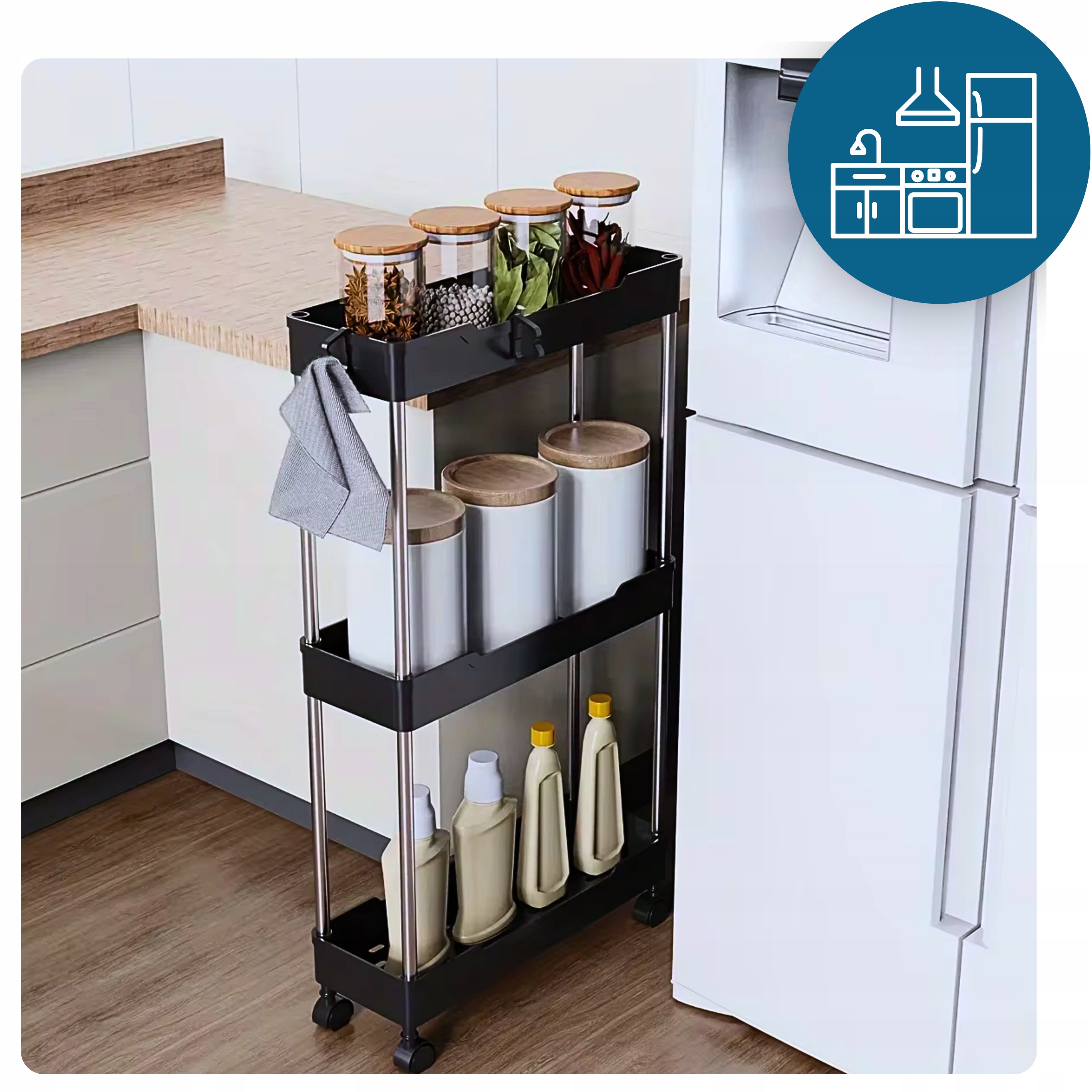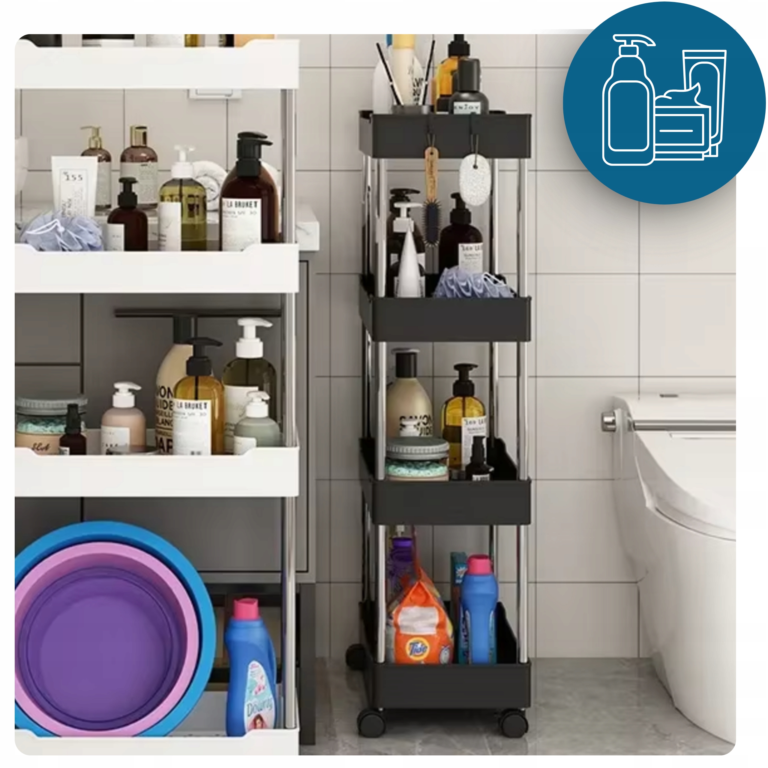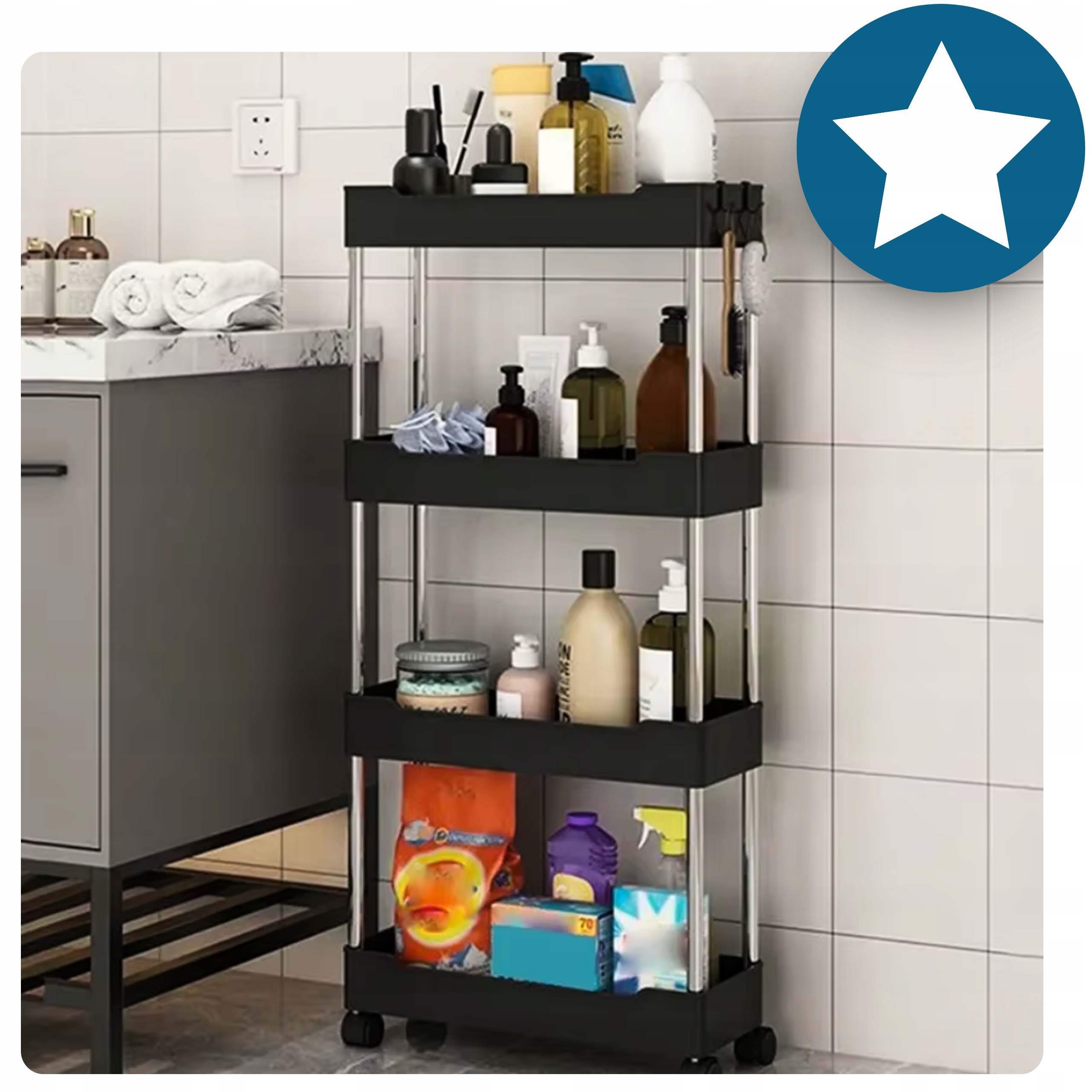 ☑️ Dzięki kółkom możesz ją łatwo przesuwać, a regulowana liczba półek pozwala dostosować ją do Twoich potrzeb. Użyj jej w łazience na kosmetyki, w kuchni na przyprawy, a nawet w pokoju dziecięcym na zabawki. Możliwości są nieograniczone!