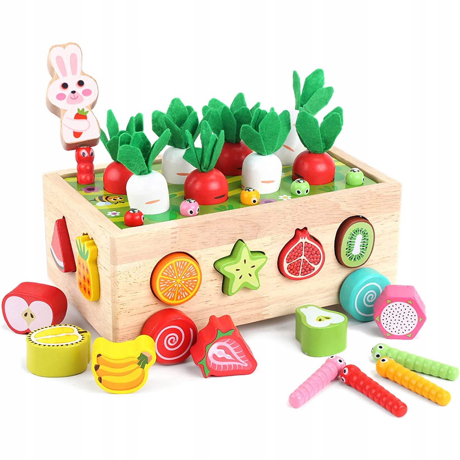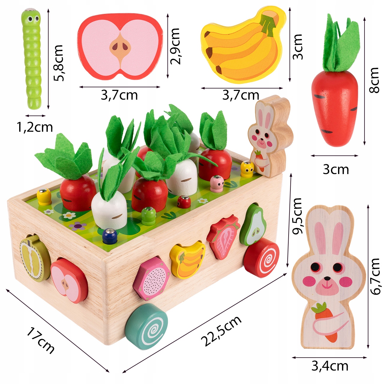 SORTER MONTESSORI DREWNIANY WÓZEK WARZYWA ROBACZKI CIĄGACZ EDUKACYJNY 3+