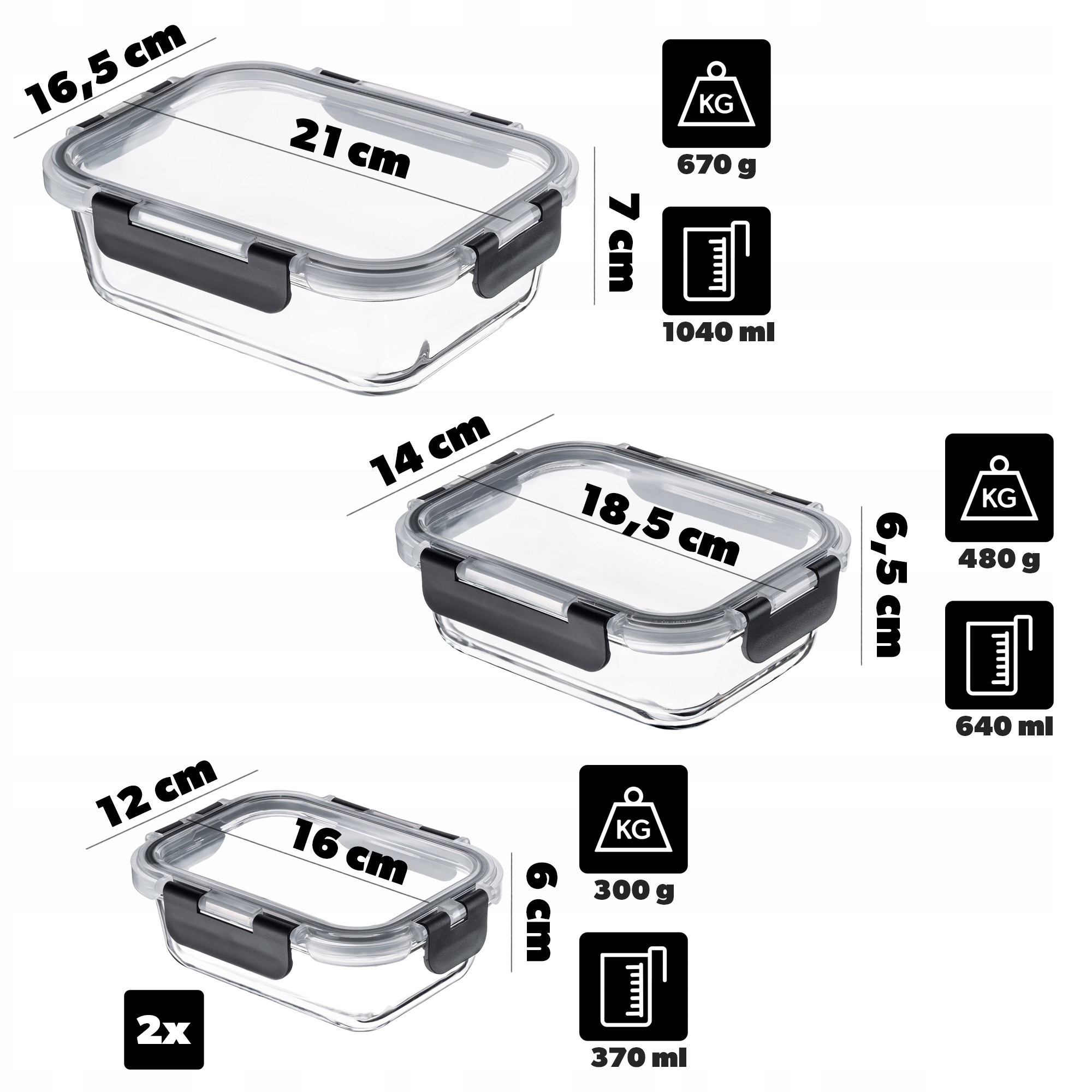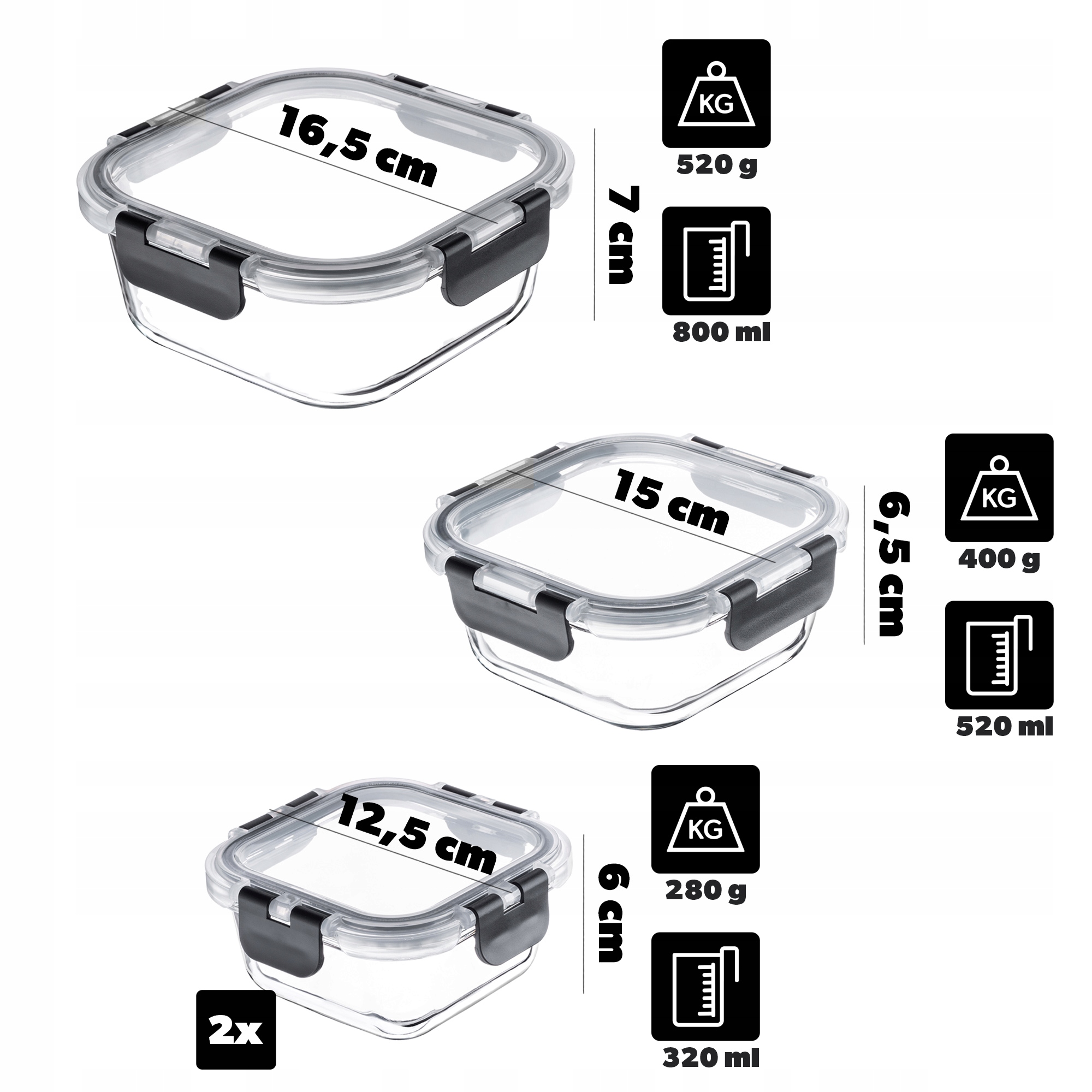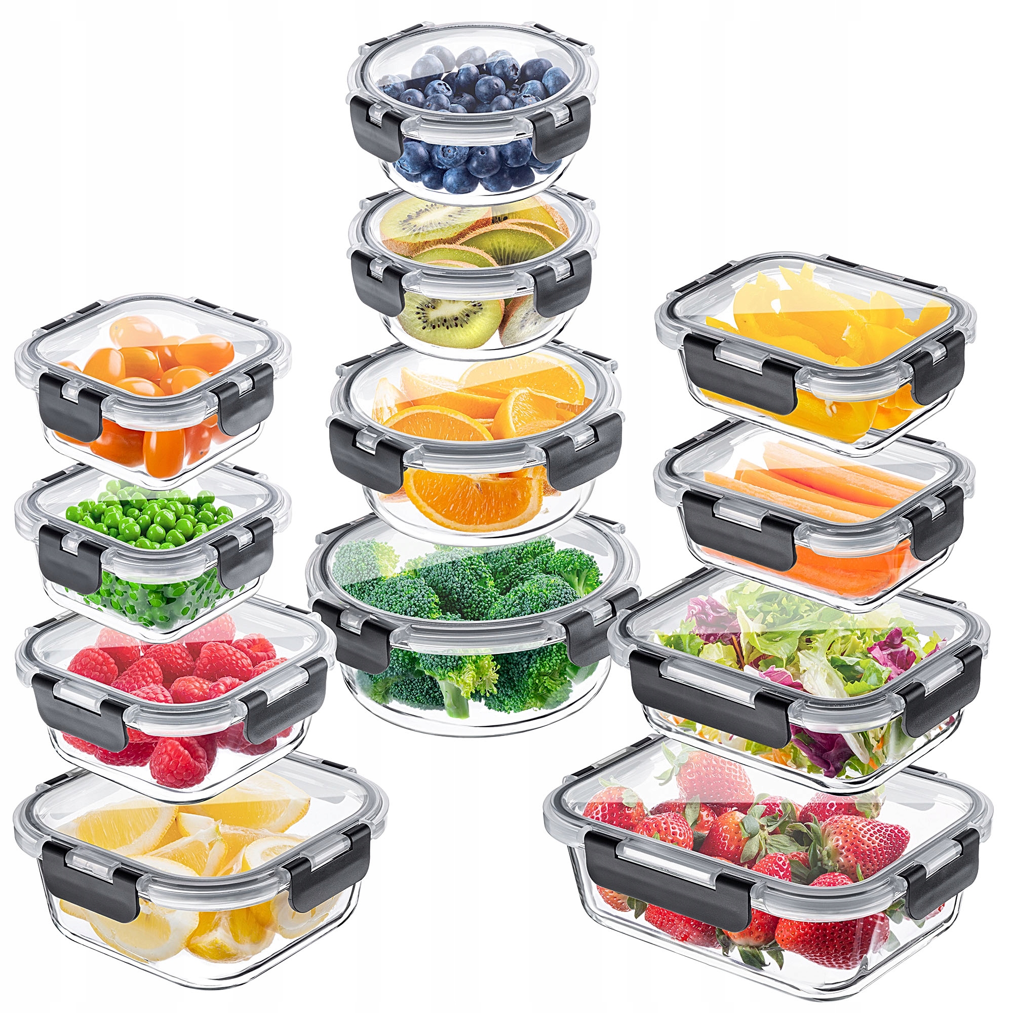 SZKLANE POJEMNIKI NA ŻYWNOŚĆ 12 SZT ZESTAW LUNCHBOX SZCZELNE BPA FREE