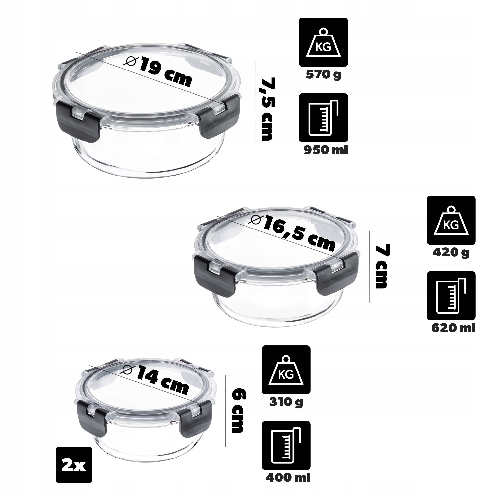 Każdy pojemnik wykonany jest z wysokiej jakości szkła odpornego na niskie i wysokie temperatury — możesz przechowywać, mrozić i podgrzewać jedzenie bez obaw.