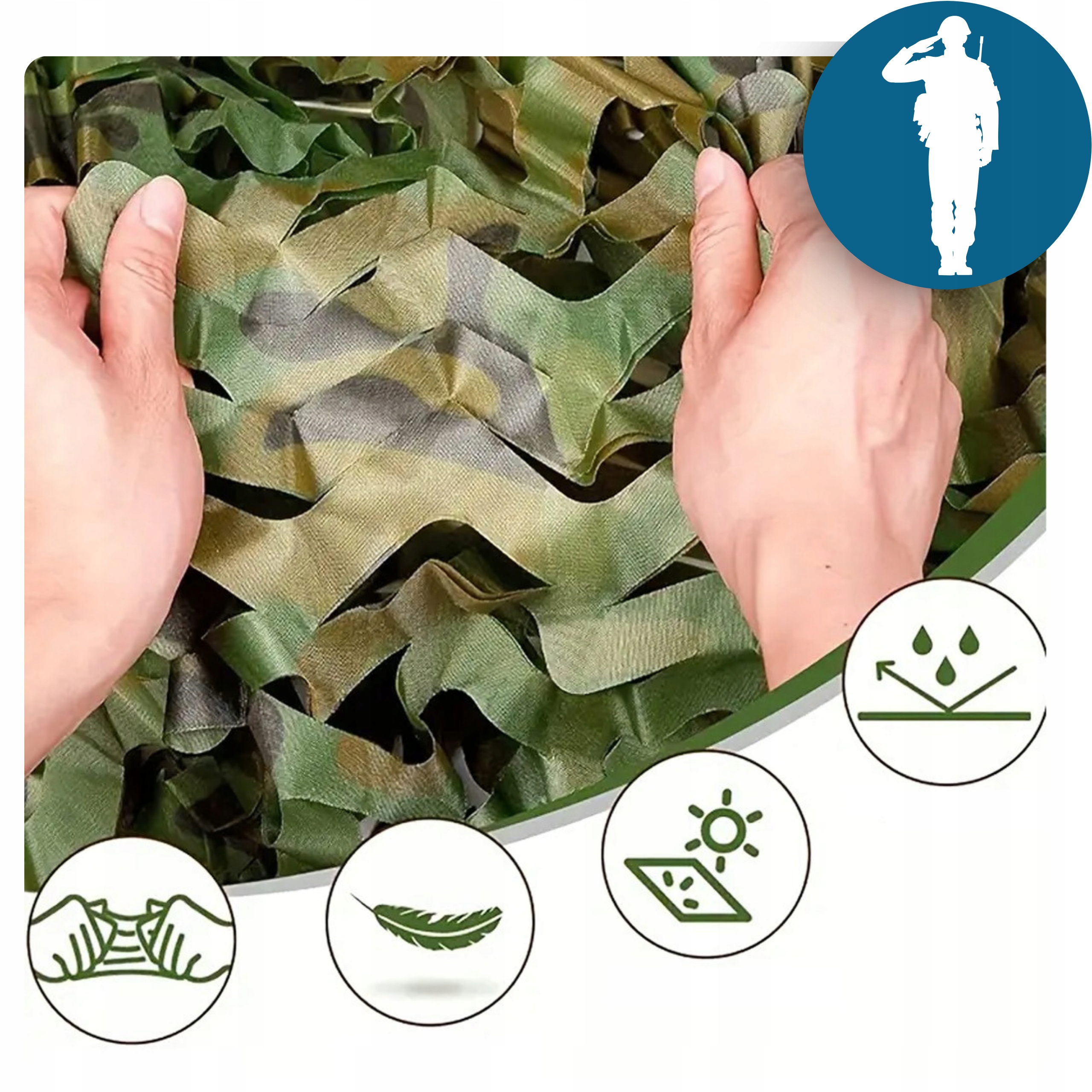 Siatka doskonale sprawdzi się do maskowania, osłaniania przed słońcem, dekoracji ogrodowej, a także podczas polowań, survivalu czy kempingu.