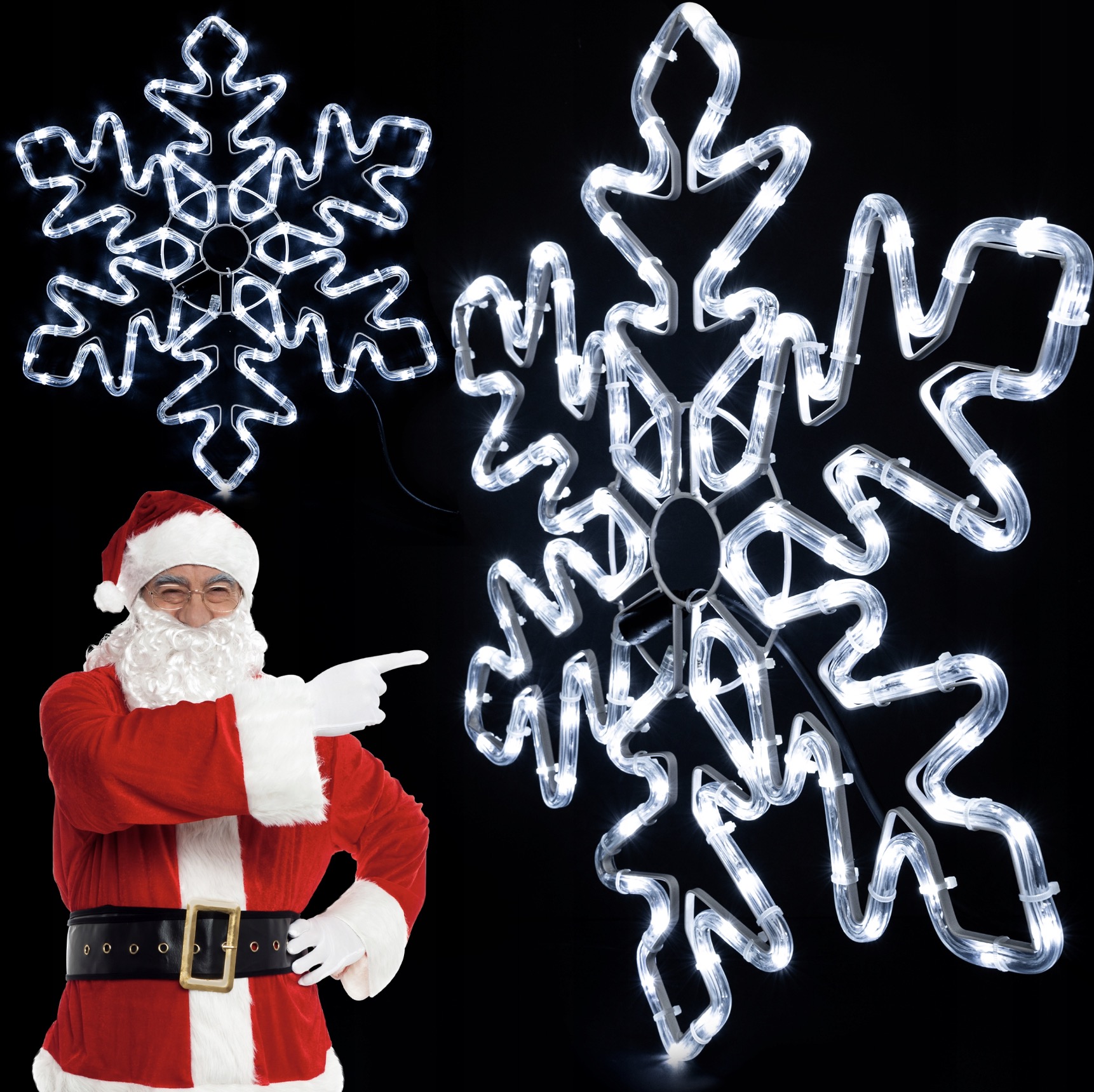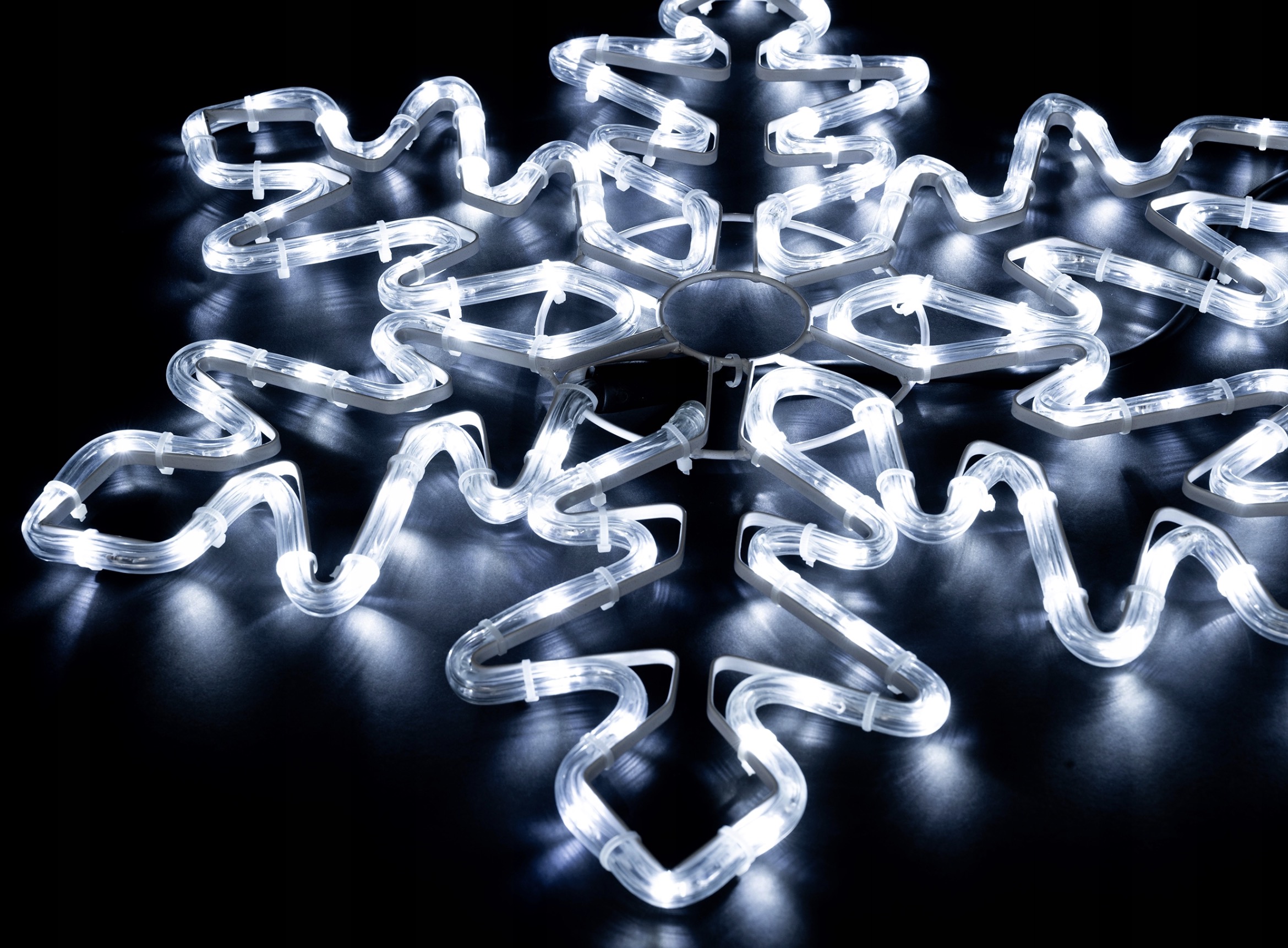 - Duża śnieżynka LED o średnicy 55 cm, wykonana z trwałego węża świetlnego LED.