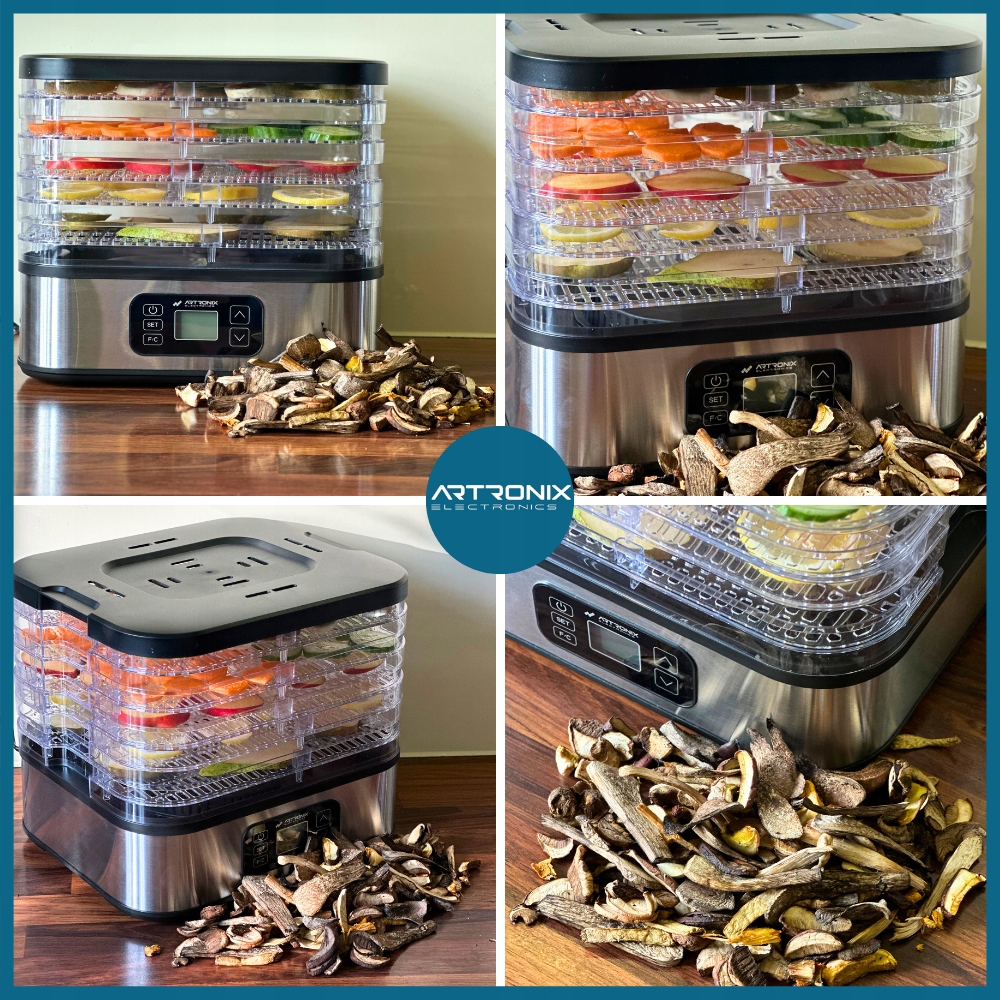 Suszarka spożywcza do grzybów, owoców, warzyw i ziół z regulacją temperatury i timerem – 5 sit, cicha i energooszczędna