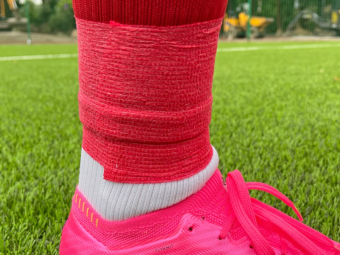 Z czerwoną taśmą piłkarską wyróżnisz się na boisku, zachowasz komfort i pełną stabilność ochraniaczy.