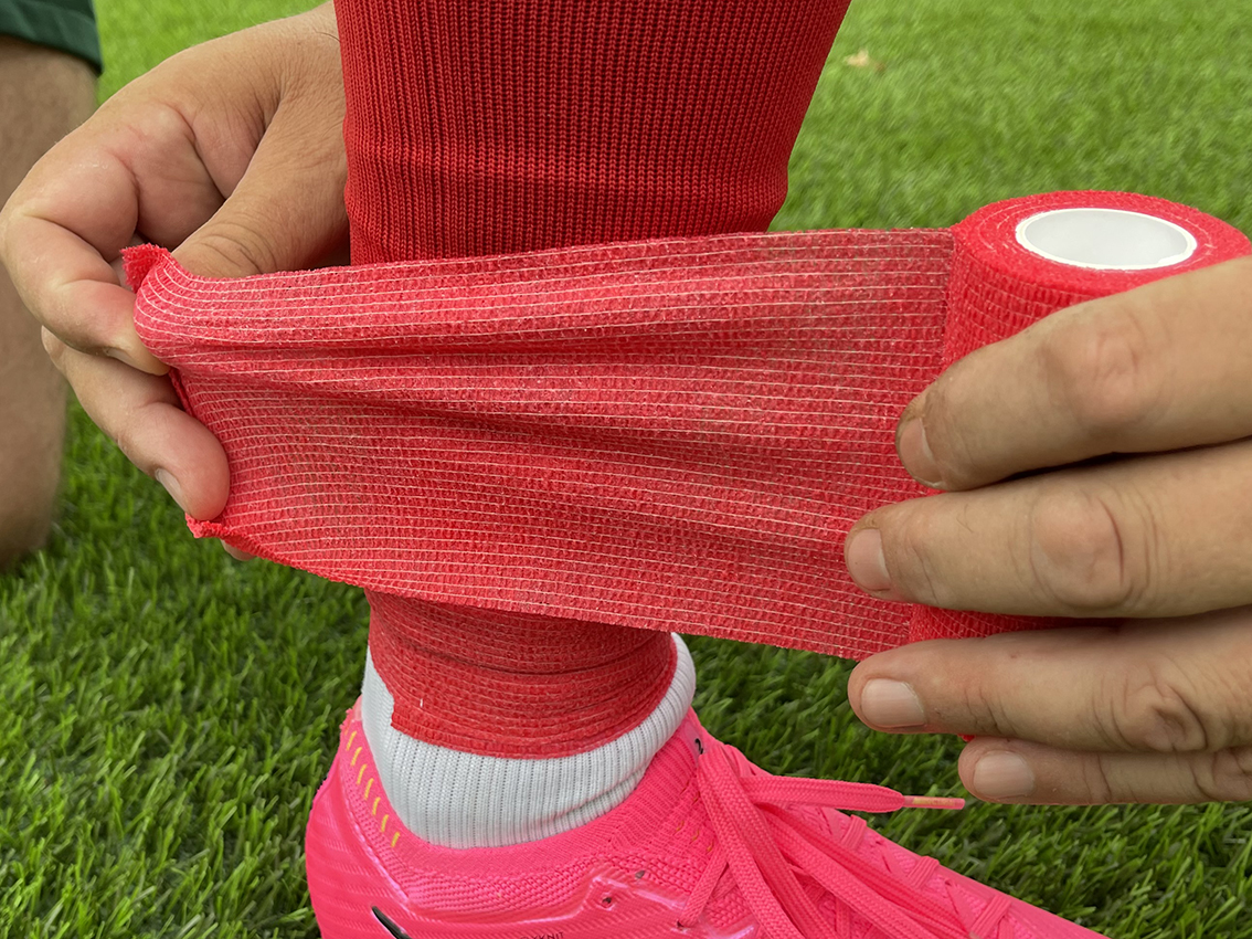 Z czerwoną taśmą piłkarską samoprzylepną nie tylko utrzymasz ochraniacze i getry na miejscu, ale też dodasz drużynowego charakteru i profesjonalnego wyglądu.