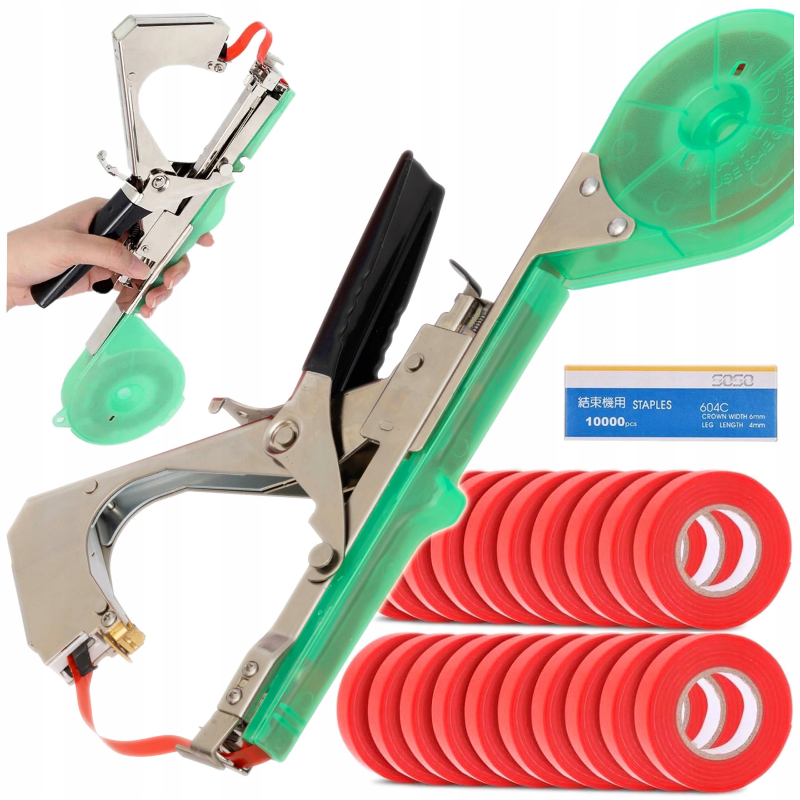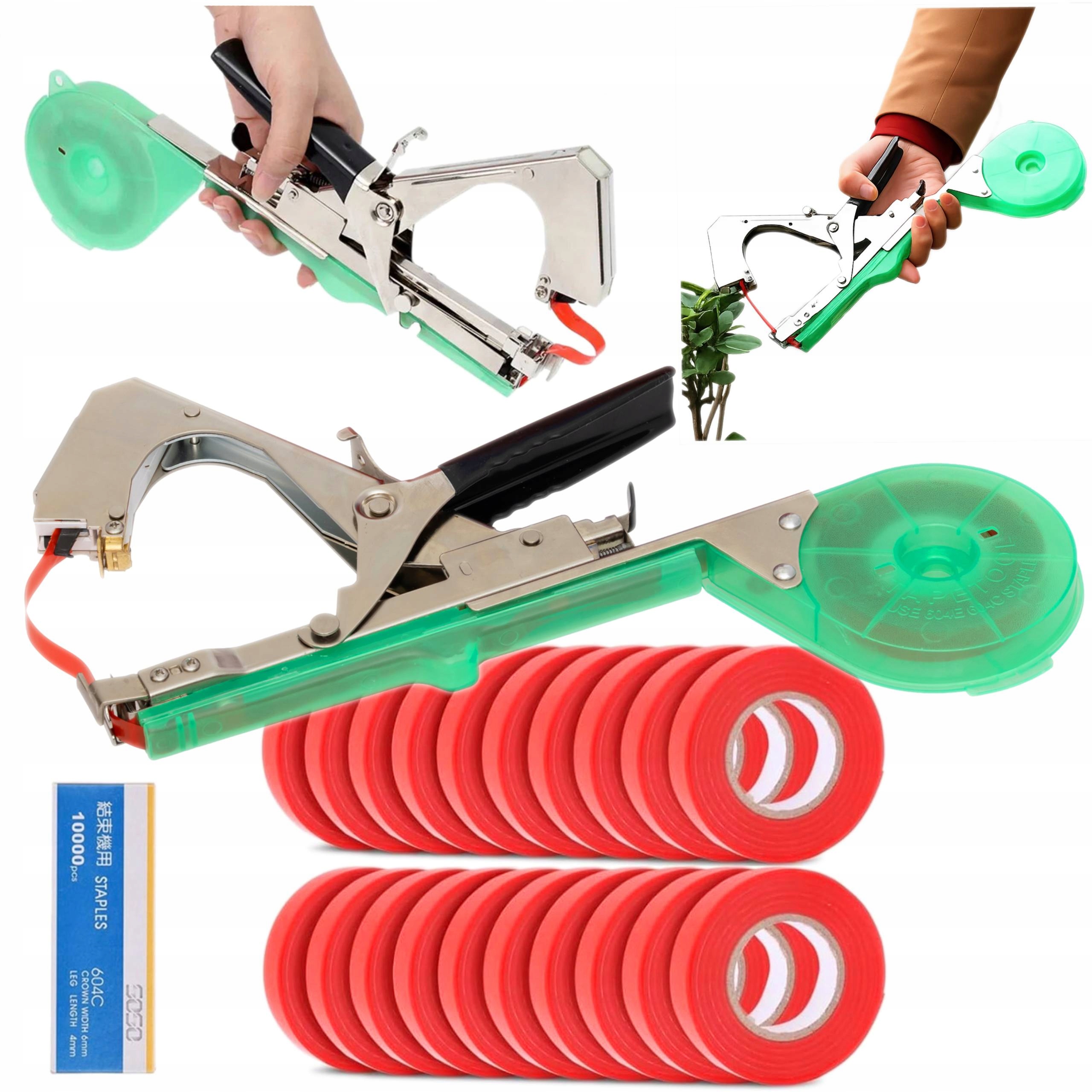 Tapener zszywacz ogrodniczy do wiązania roślin zestaw 16 taśm 10000 zszywek