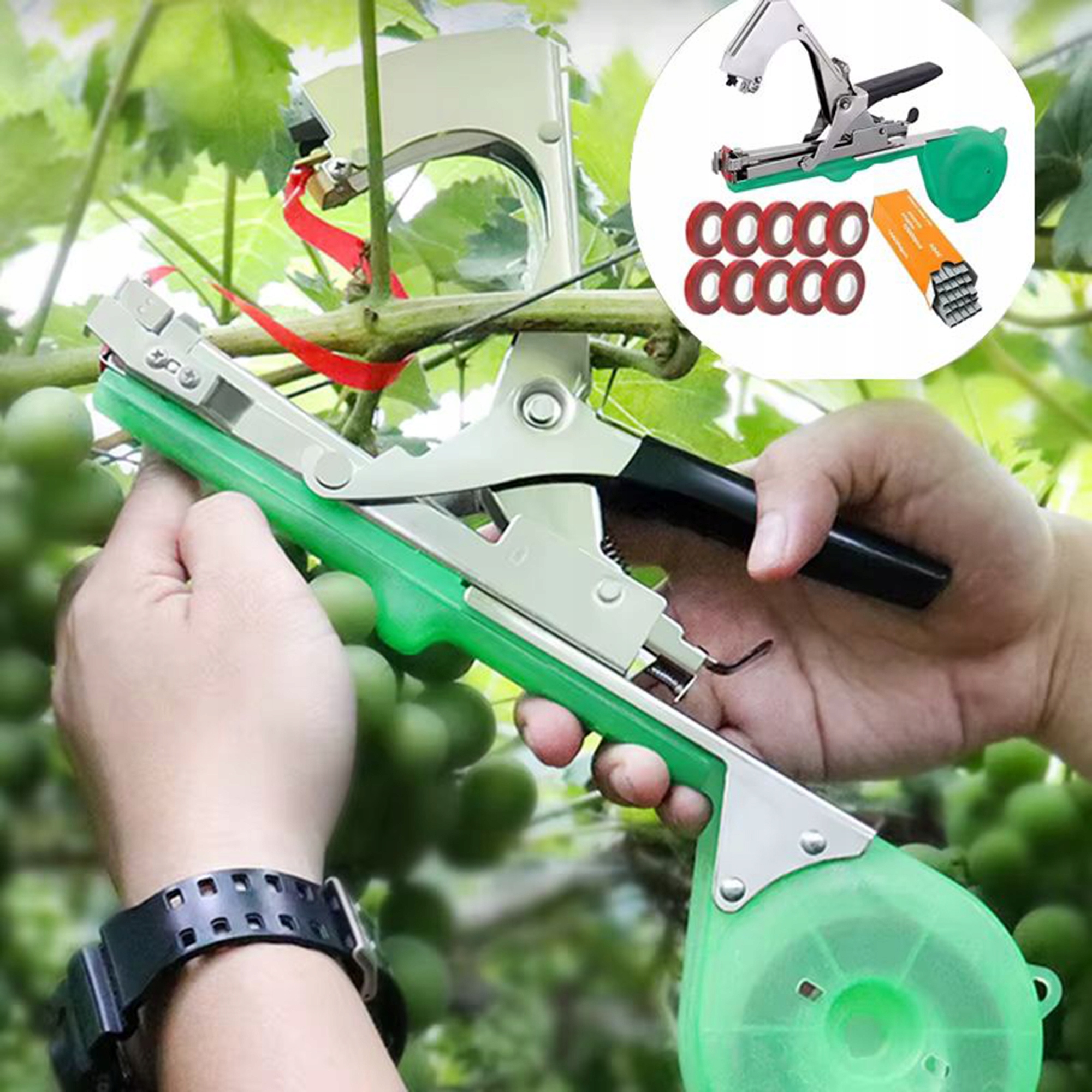 Dzięki niemu podwiązywanie roślin zajmuje kilka sekund zamiast kilku minut, a duży zapas materiałów sprawia, że nie musisz martwić się o częste uzupełnianie taśmy czy zszywek.