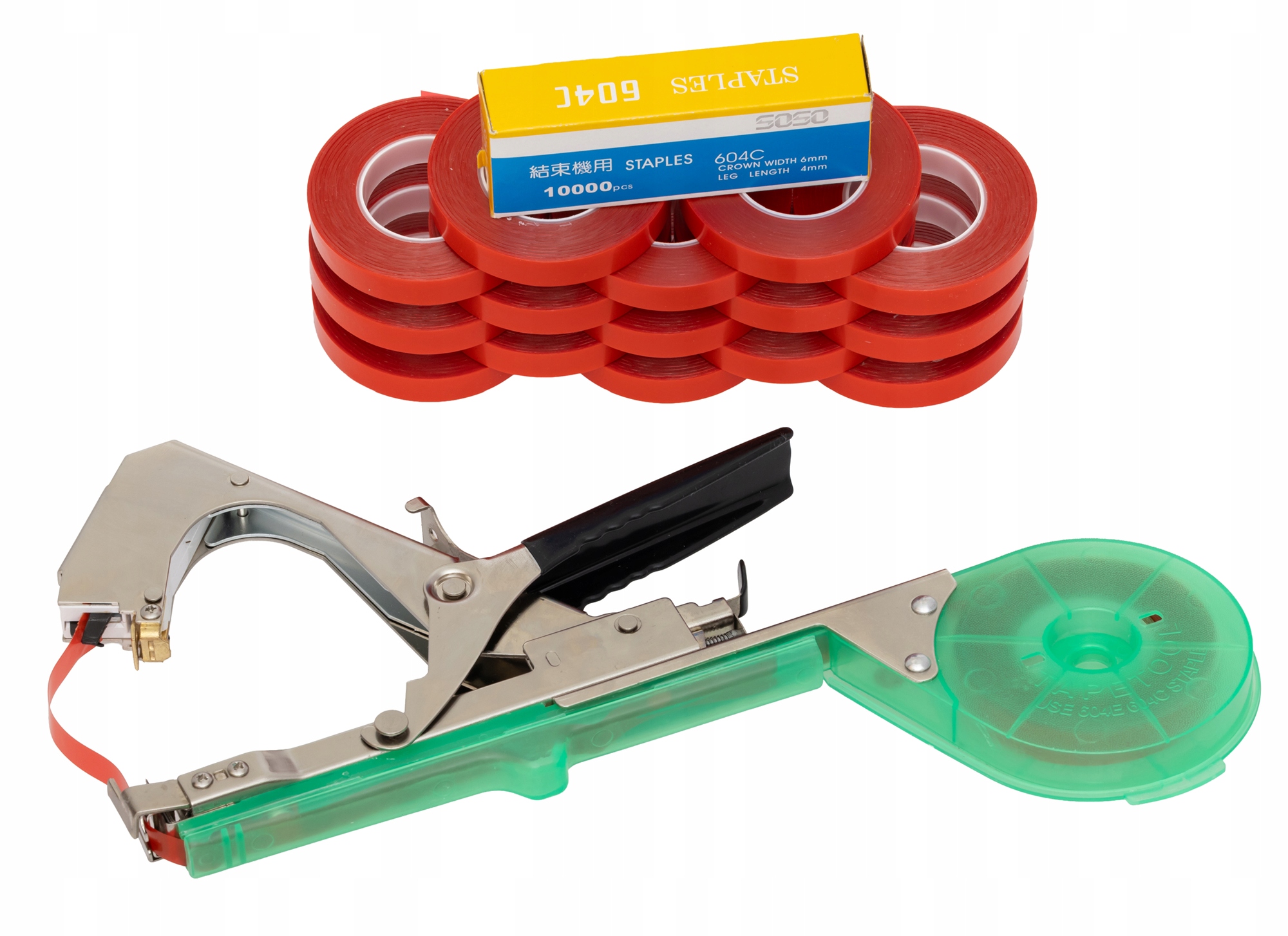 Zestaw z 16 taśmami i 10 000 zszywek to praktyczne rozwiązanie dla każdego, kto chce pracować w ogrodzie sprawniej, wygodniej i bardziej profesjonalnie.