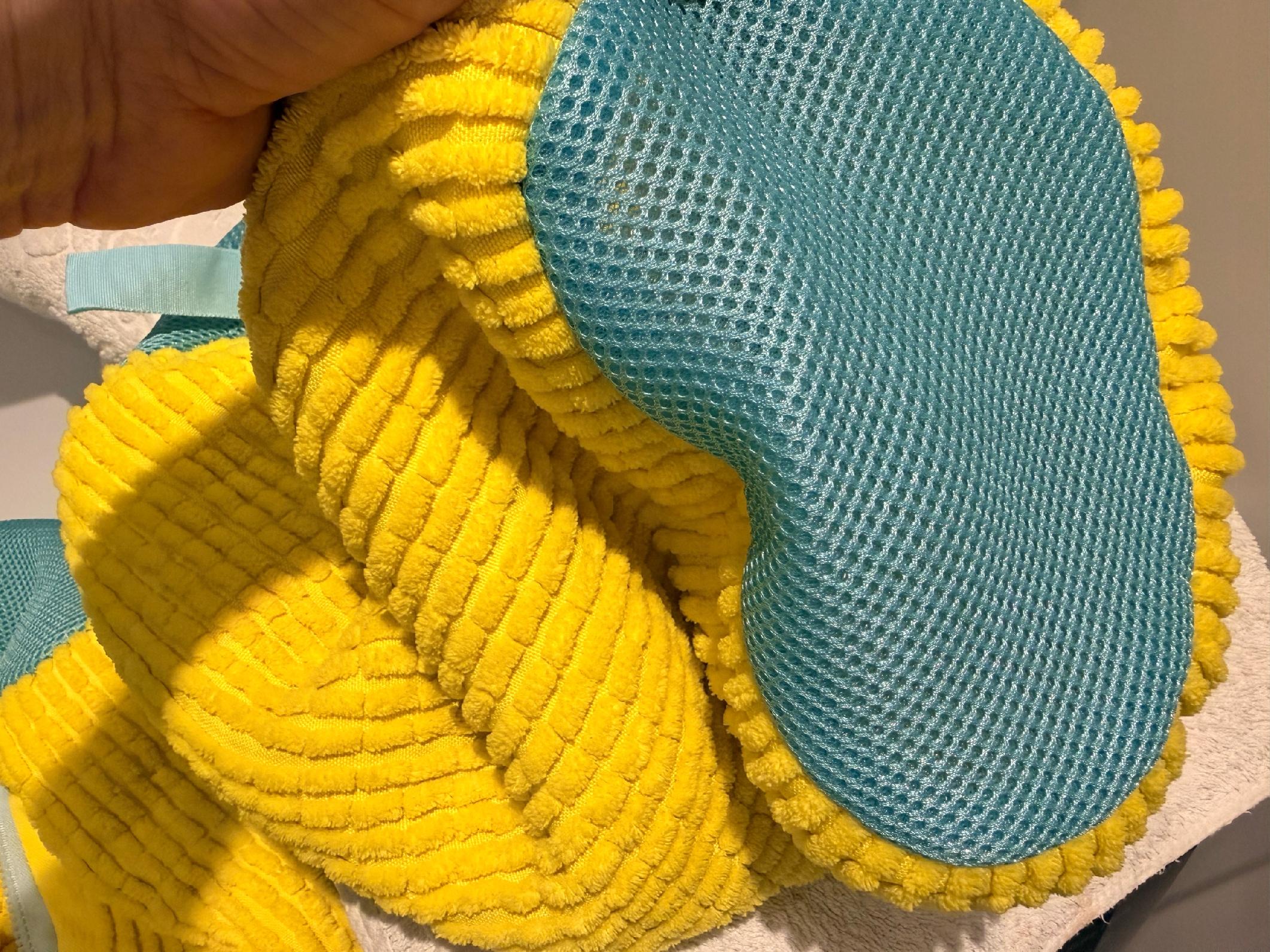 - Materiał: mikrofibra + poliester + warstwa amortyzująca
