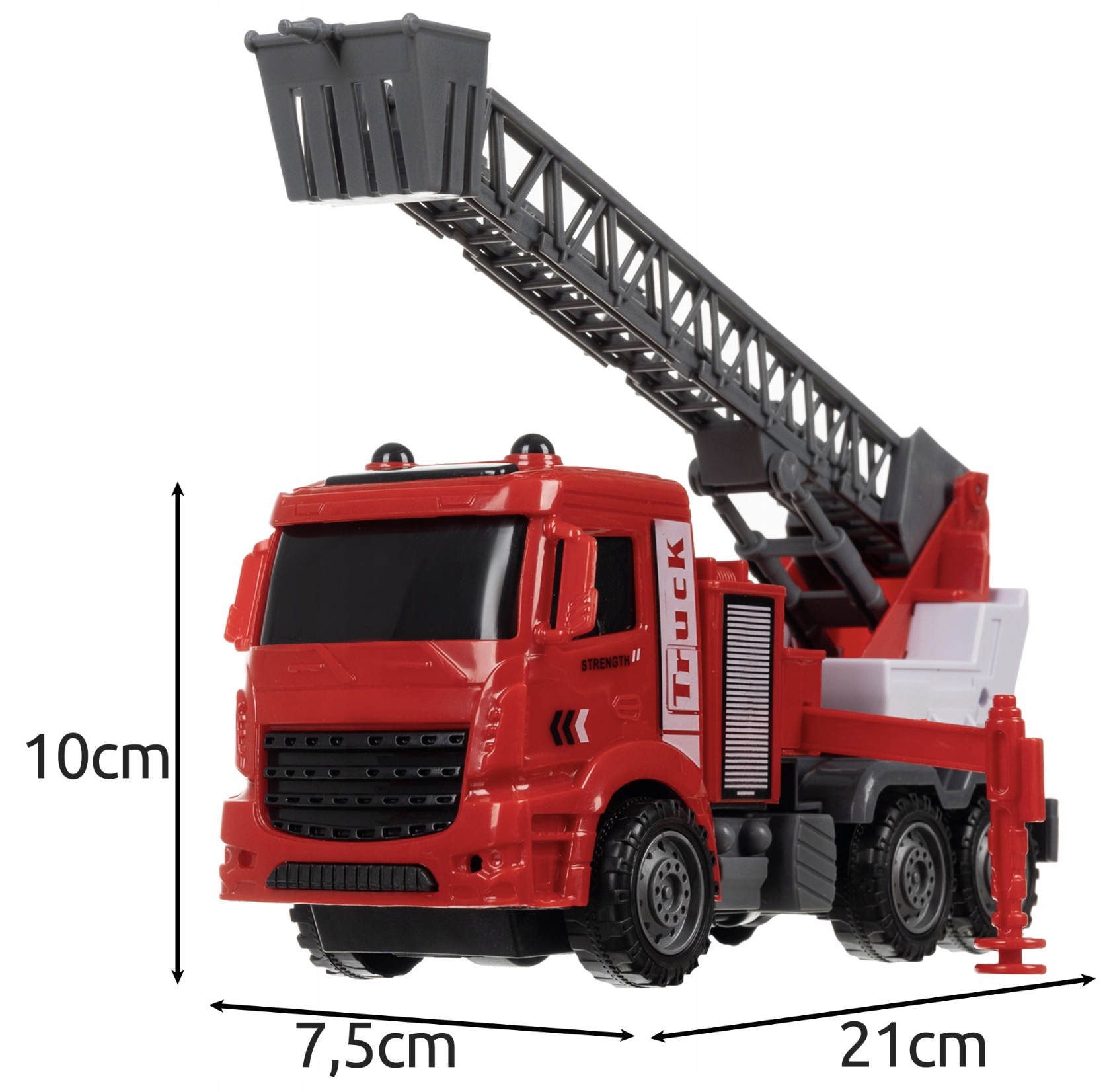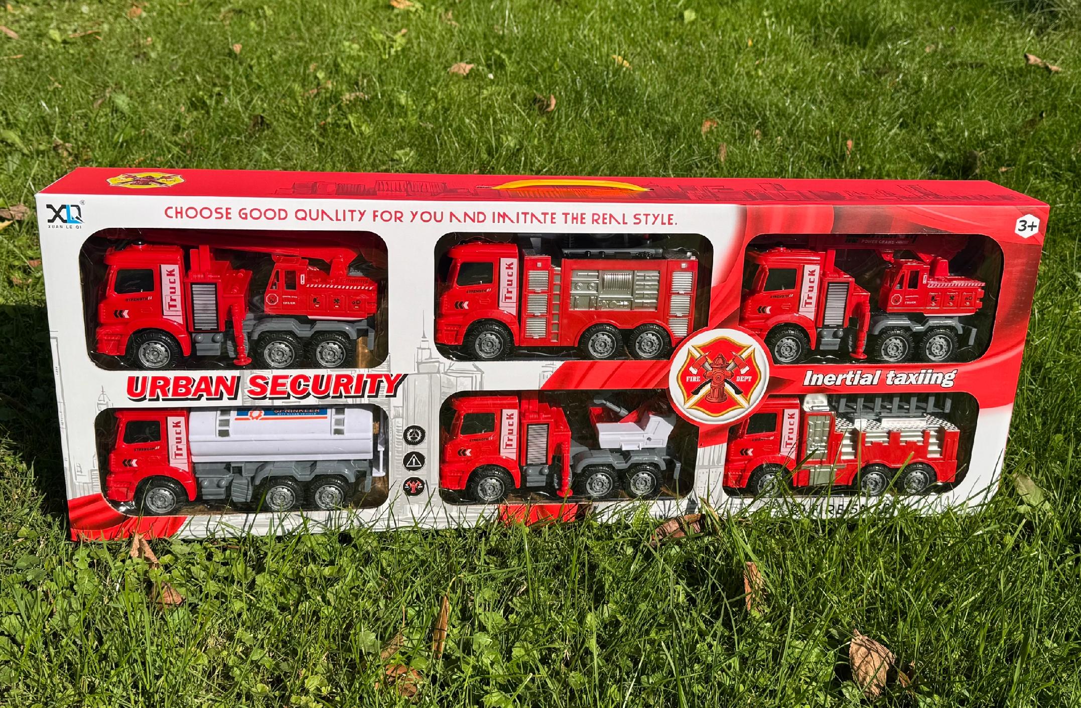 Duży zestaw 6 wozów strażackich z ruchomymi elementami, napędem mechanicznym i realistycznymi funkcjami. Zabawa, która rozwija i uczy odwagi!