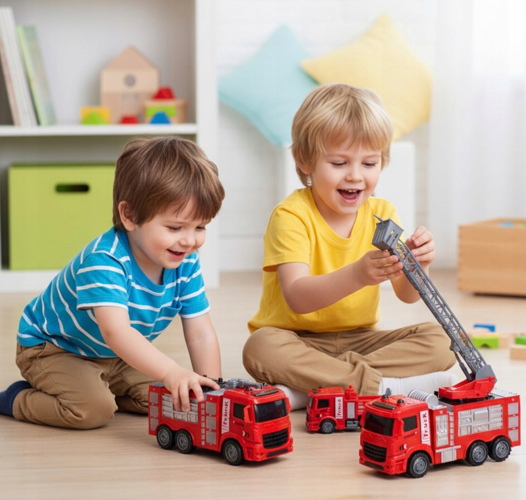 Zestaw 6 funkcjonalnych pojazdów ratunkowych pozwala odgrywać realistyczne misje i scenariusze – od gaszenia pożarów po akcje ewakuacyjne.